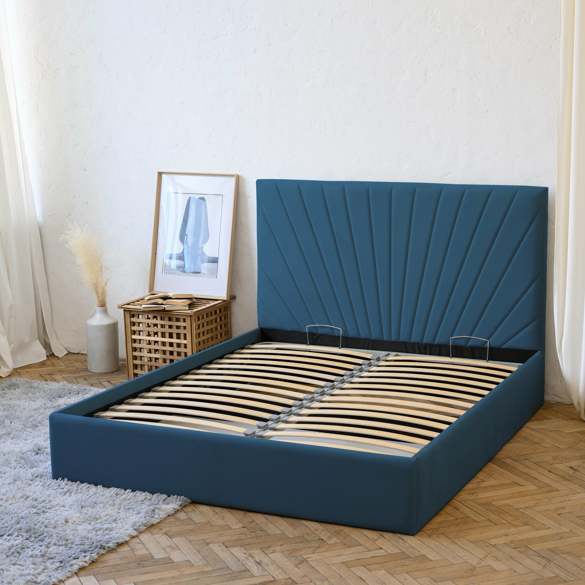Кровать 160х200 c подъемным механизмом и бельевым ящиком Стефания синий