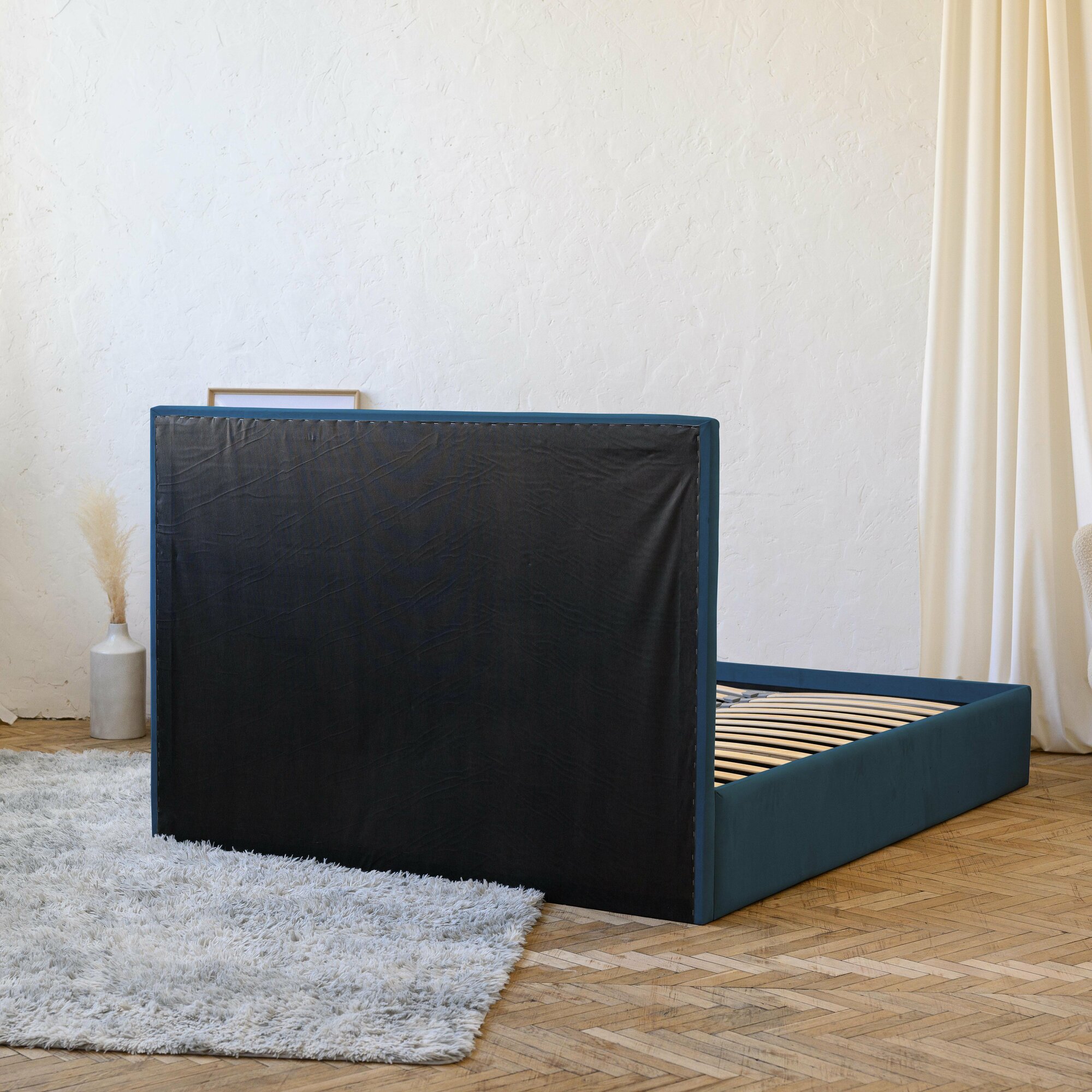 Купить Кровать 180х200 двуспальная Стефания, с подъёмным механизмом, с ящиками, с мягким изголовьем, синяя