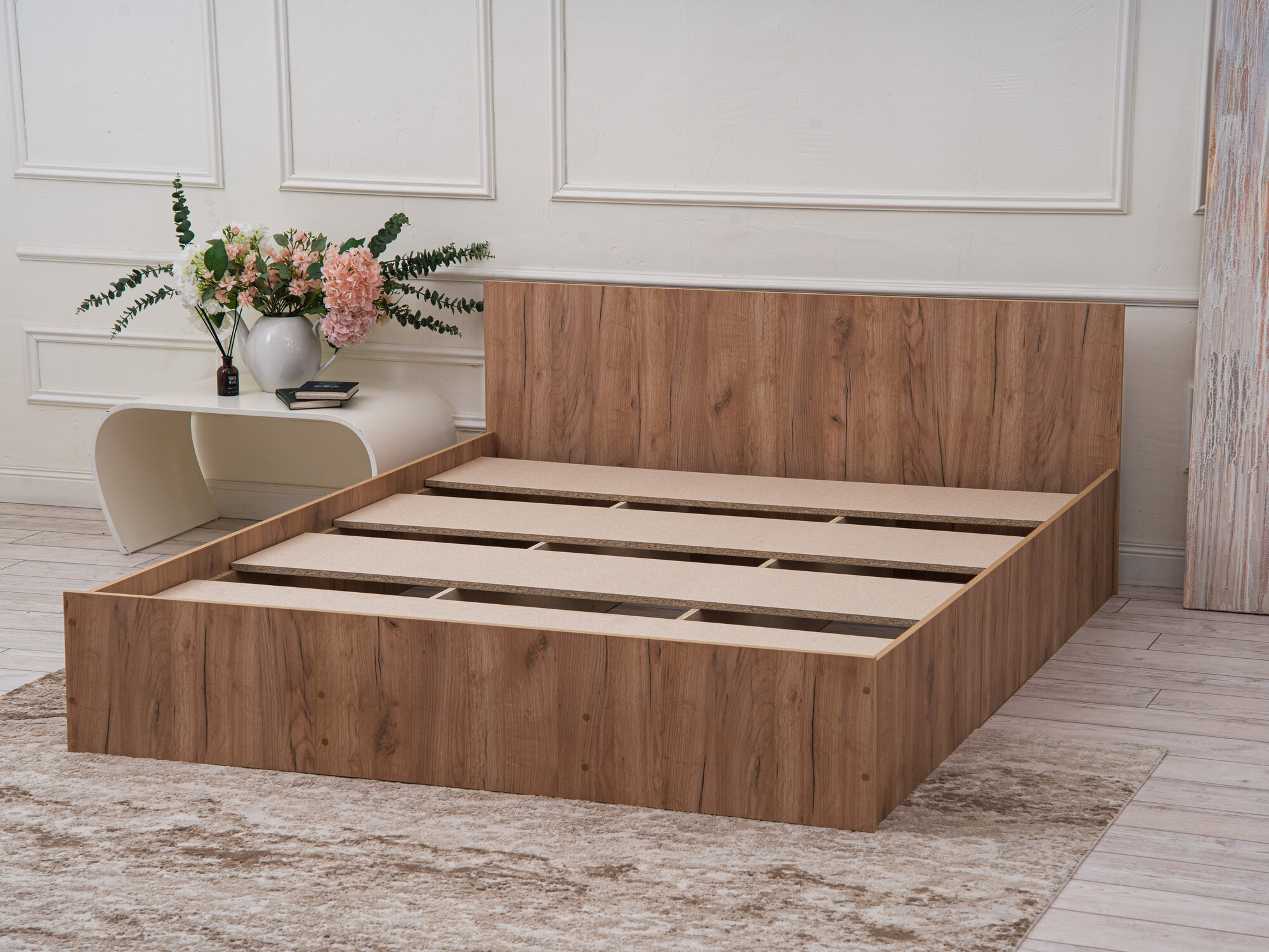 Кровать с ящиками 1800 с двумя тумбочками Камелия, цвет дуб сонома, ШхГхВ 296х217х78,2 см, спальное место 1800х2000 мм, без матраса, основание есть