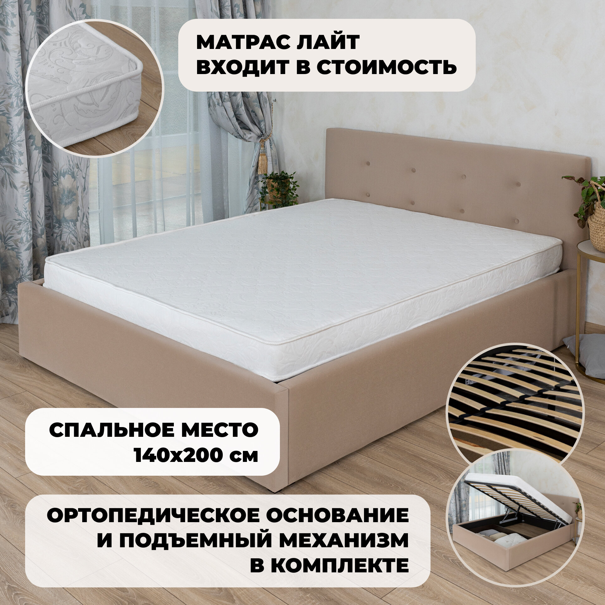 | Особенности | мягкое изголовье, с подъемным механизмом |