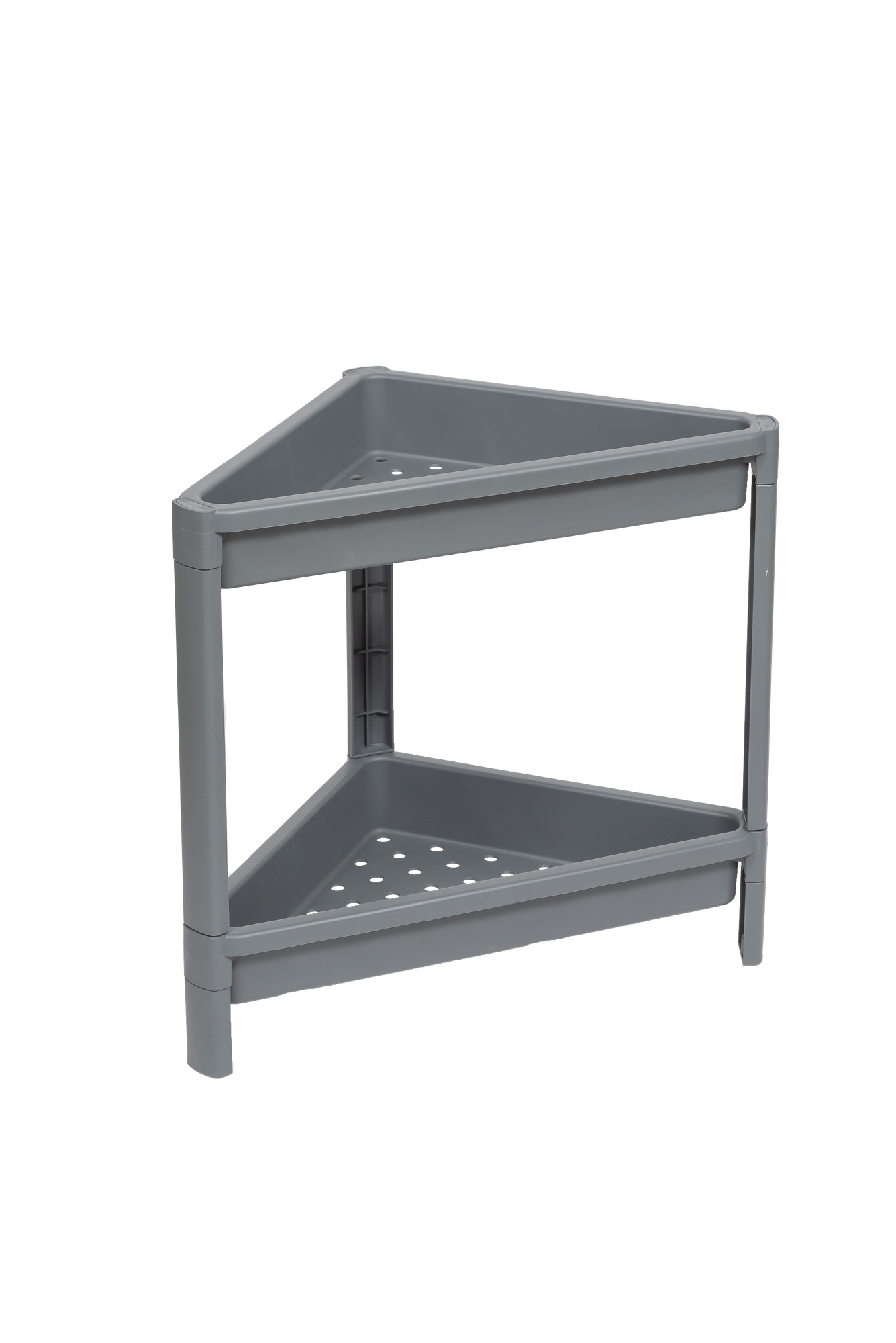 Этажерка для ванной 2х ярусная VIKEA угловая, цвет серый / Стеллаж напольный для кухни / Органайзер для хранения вещей универсальный пластиковый