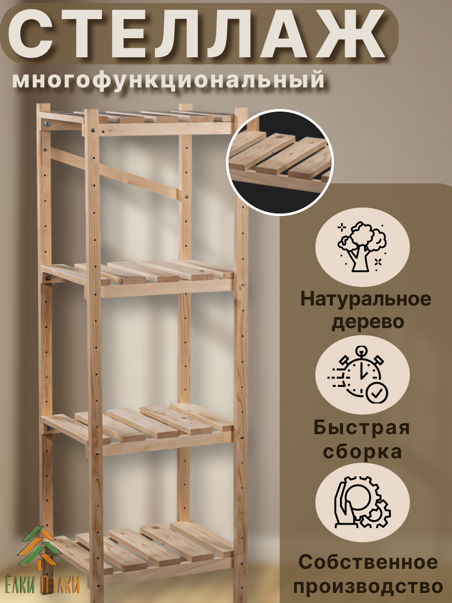 Стеллаж деревянный для дома 880х430х290мм / Этажерка деревянная на 4 полки интересное:
