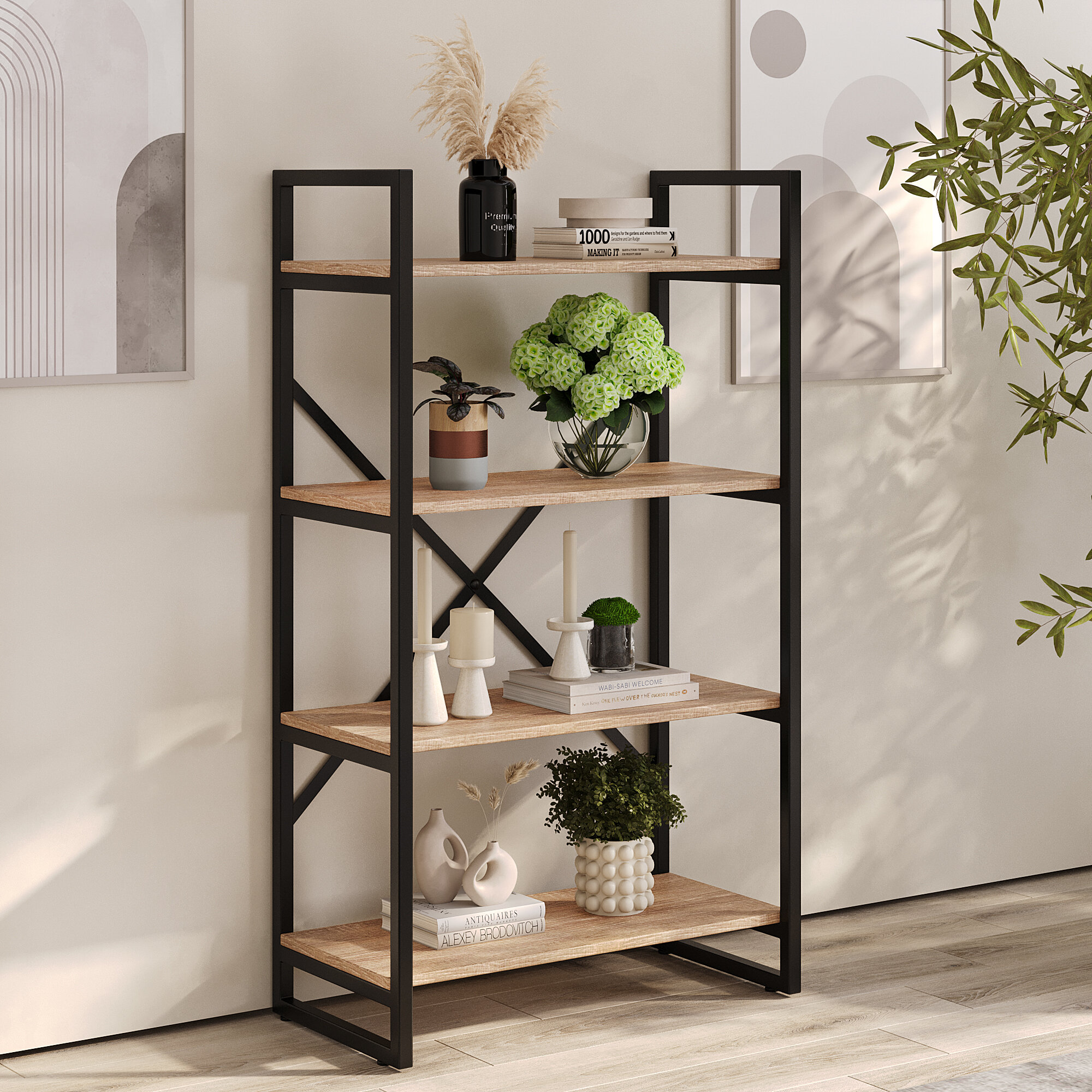 Купить Стеллаж в стиле ЛОФТ BRUNO 4 полки (117 х 68 х 34см) Дуб Сонома