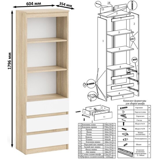 СохранитьСтеллаж Свк Мори МСТ600.3, цвет дуб сонома/белый, ШхГхВ 60,4х35,4х179,6 см. интересное: