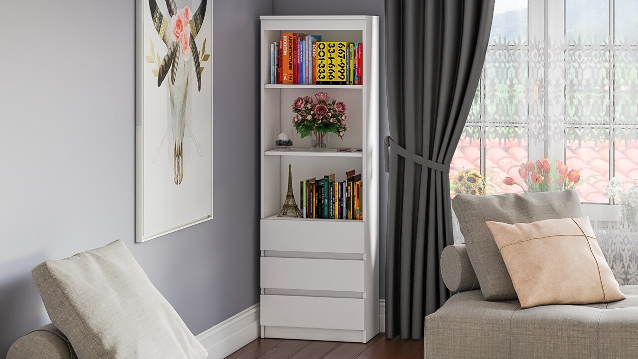 Стеллаж для книг СВК Мори МСТ600.3, 3 ящика, 60х36х180 см, цвет дуб сонома/белый