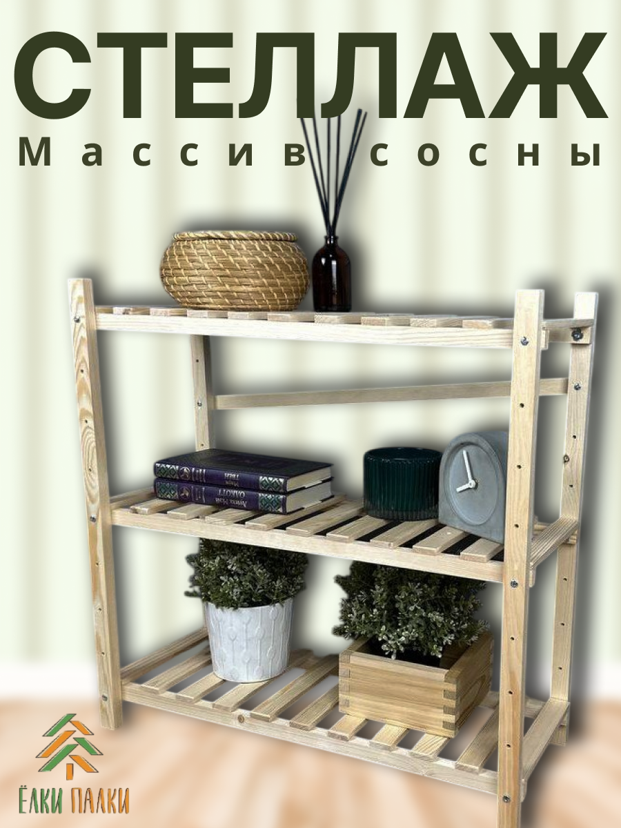 Стеллаж из массива сосны для дома 610х610х310 мм / Подставка деревянная на 3 полки