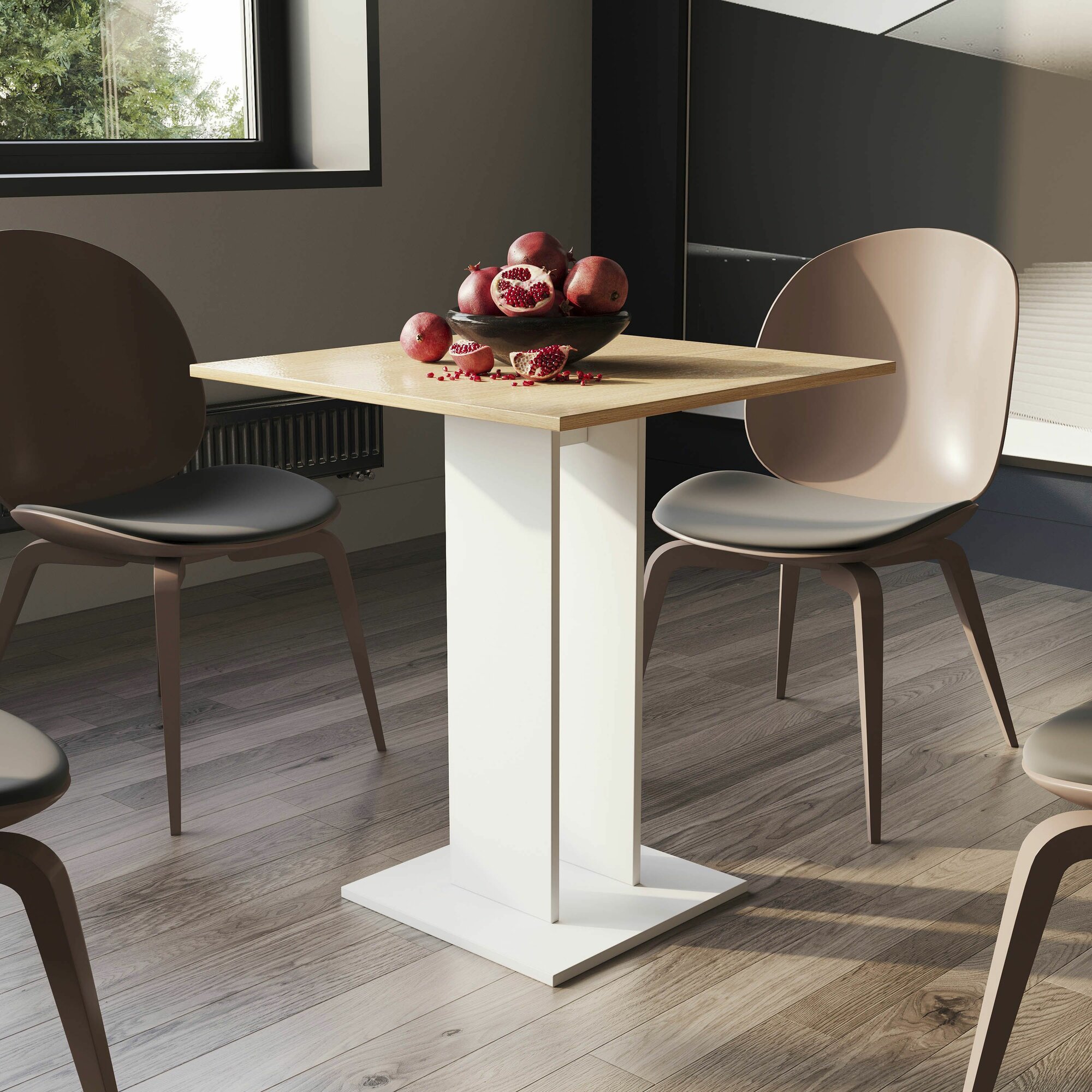 Стол обеденный кухонный белый бежевый дуб (ВхШхГ) 77х65х65 см, Анкона