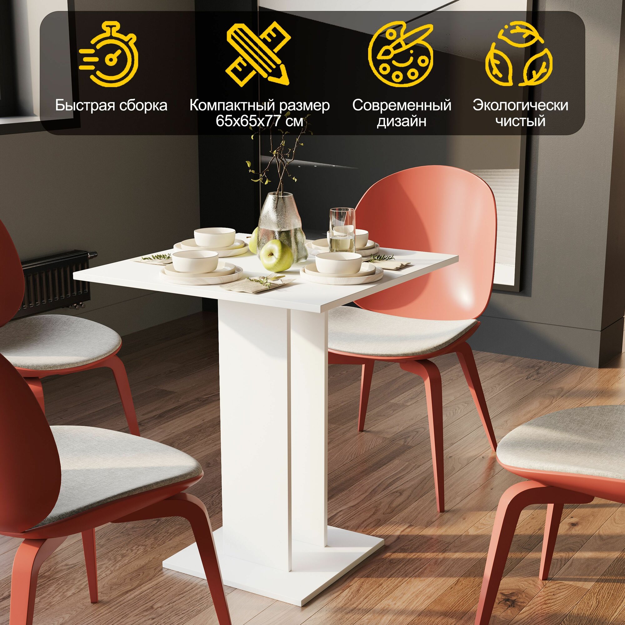 Стол обеденный кухонный белый (ВхШхГ) 77х65х65 см, Анкона