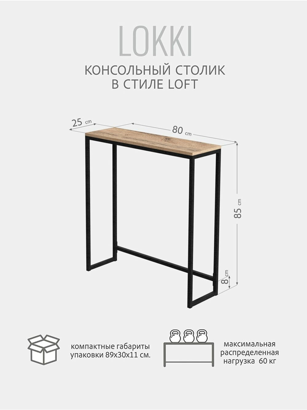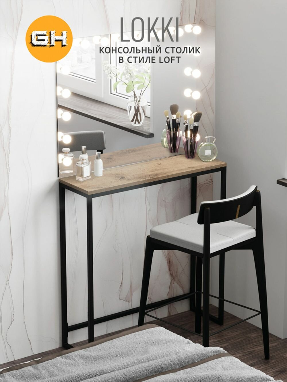 Купить Консольный столик LOKKI loft, дуб вотан, приставной, туалетный, металлический, деревянный, 85x80x25 см, гростат