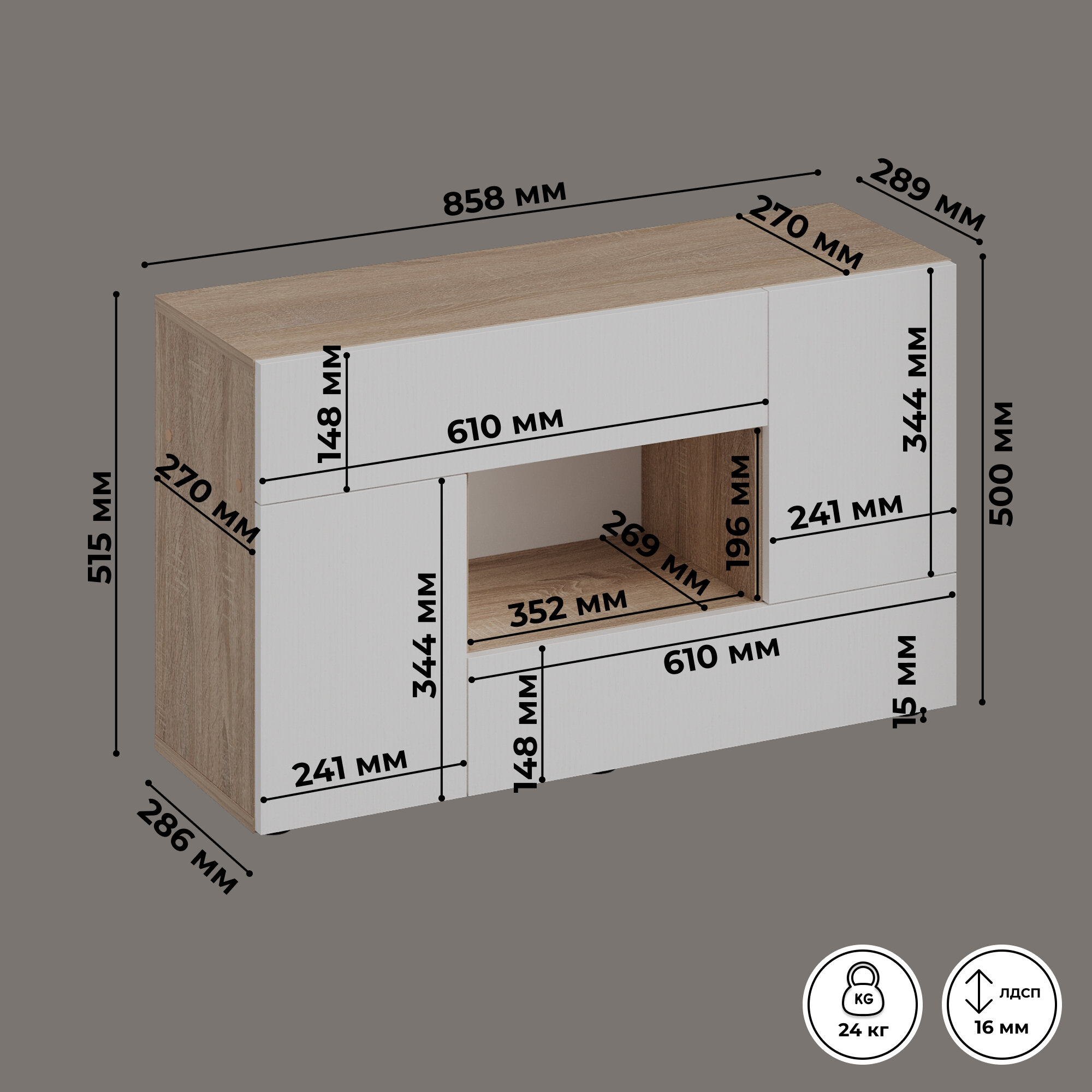 Комод Кео белый и сонома для гостиной и спальни, универсальный, 52х86х29 см