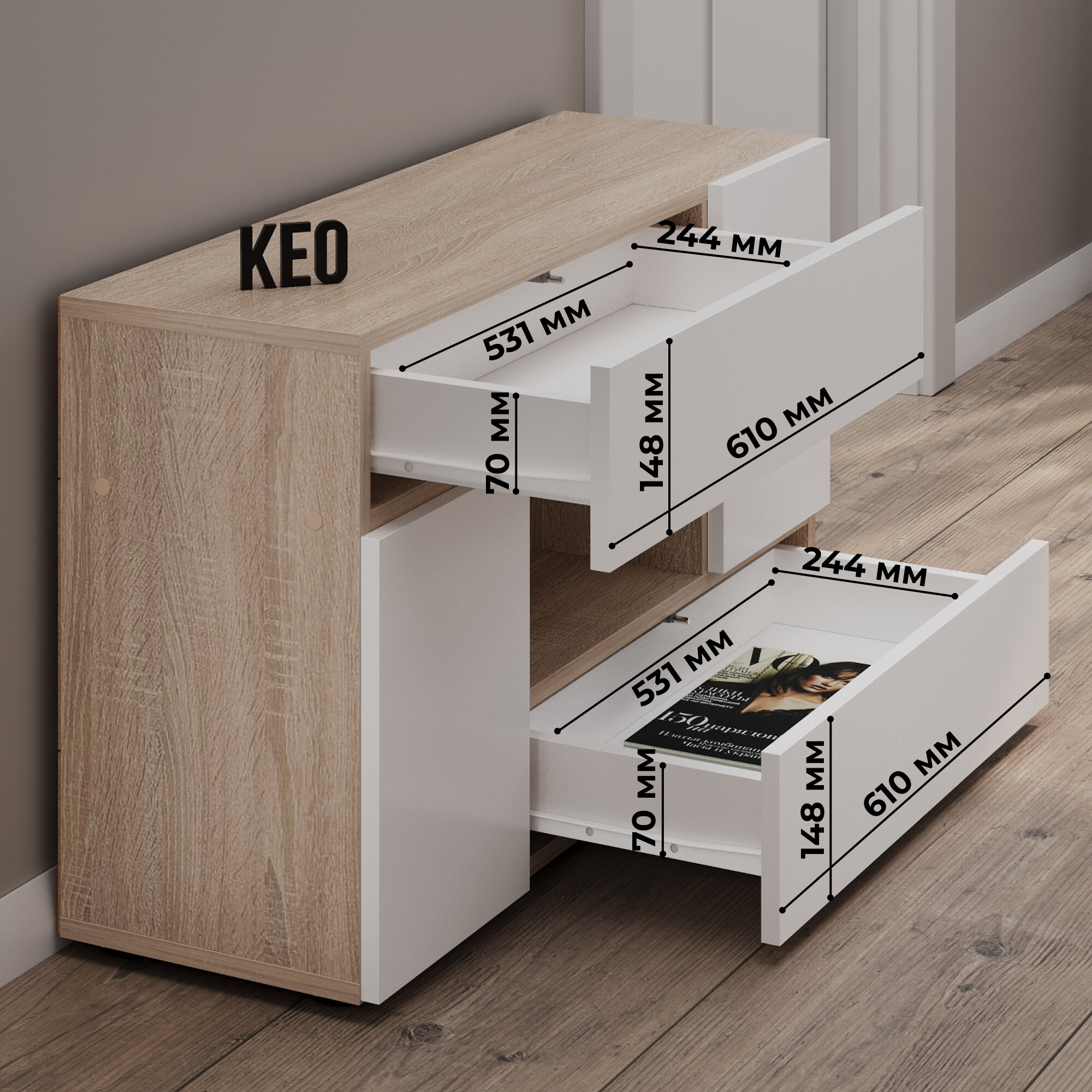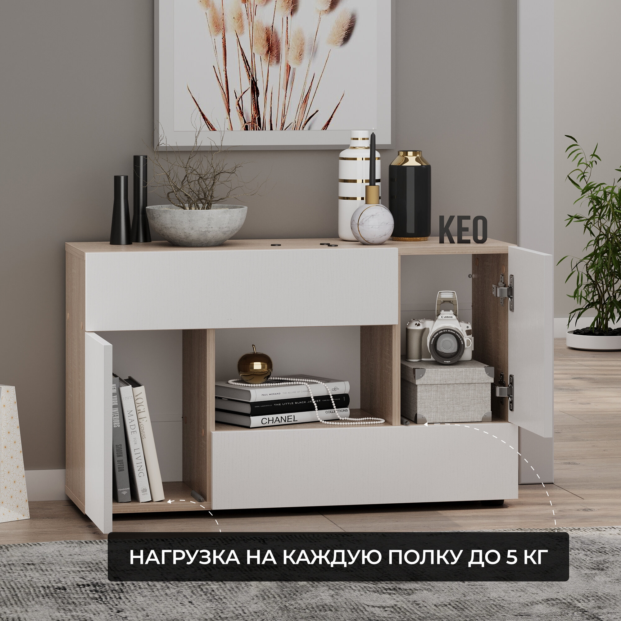 Комод универсальный Кео КМД-205 белый и сонома, 92х90х26 см для спальни, гостиной, детской