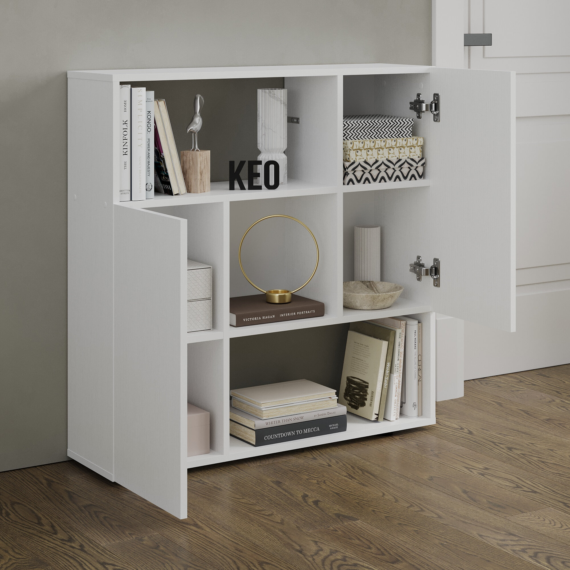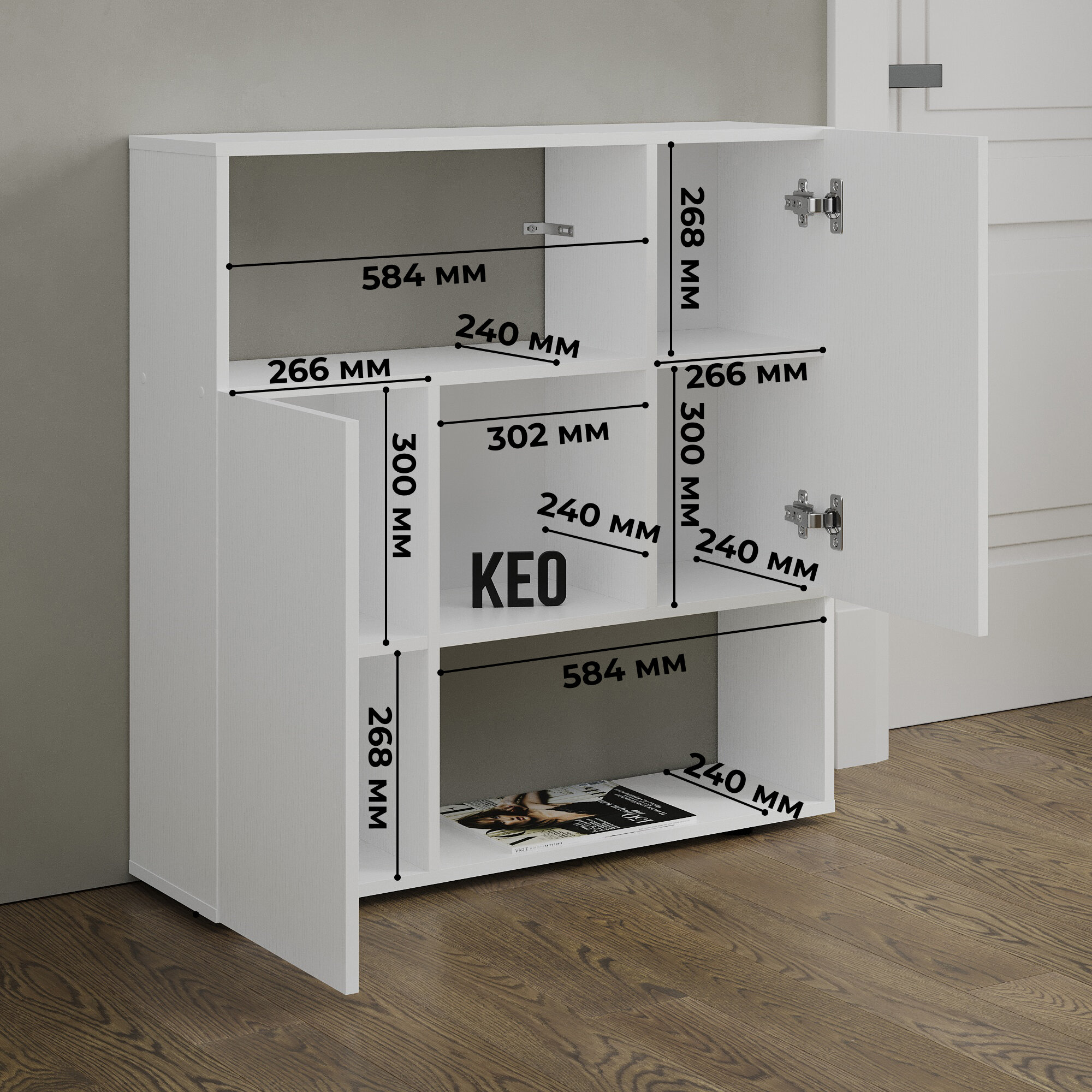 Комод универсальный Кео КМД-205 белый и сонома, 92х90х26 см для спальни, гостиной, детской