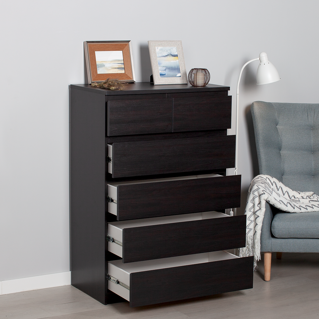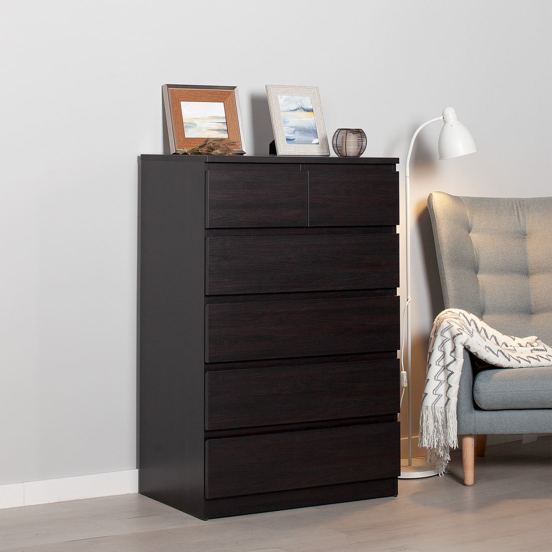 Комод ГУД ЛАКК Мальта, 4+2 ящика, 80х48х121 см, черно-коричневый, дуб венге
