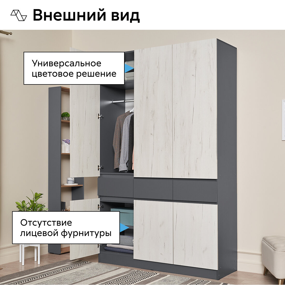 | Особенности | модульный, штанга для вешалок |