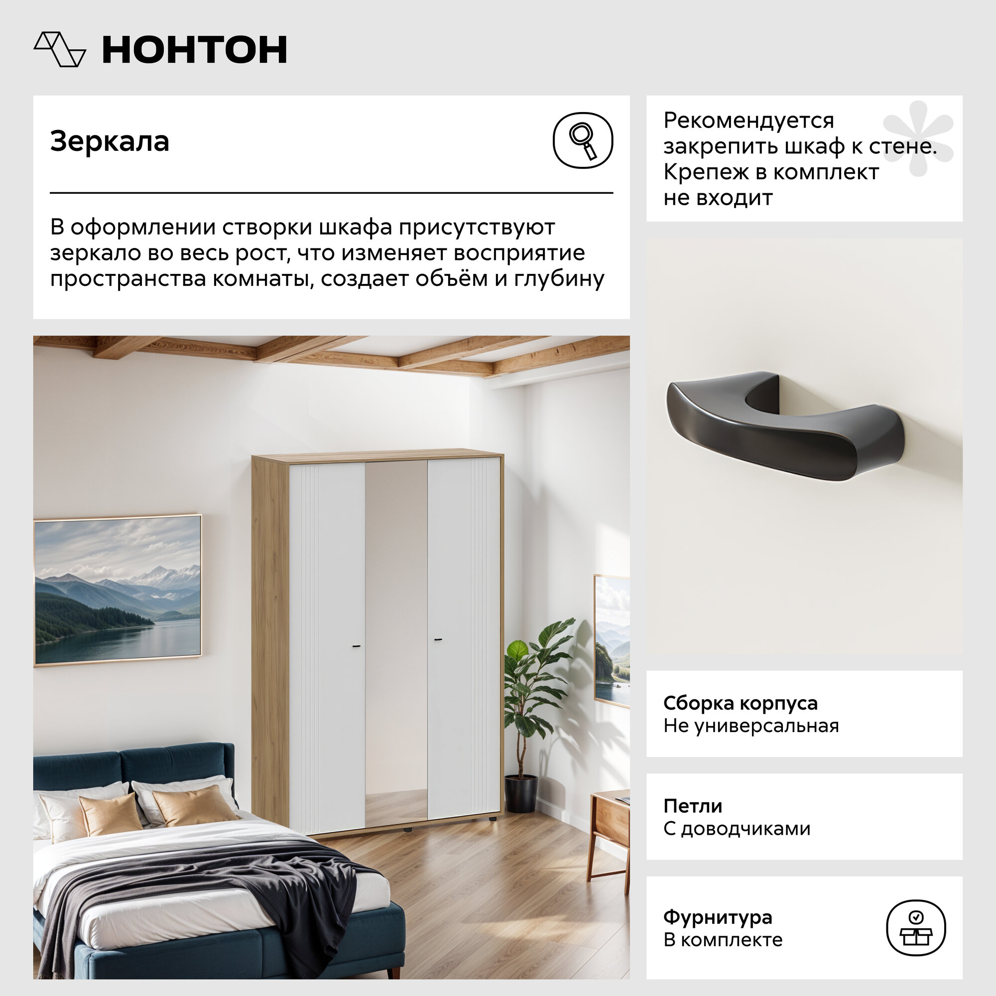 Ниже Вы можете прочитать отзывы на Шкаф для одежды с зеркалом Нонтон Милан, дуб золотой / белый матовый, 140 см, ознакомится с подробными характеристиками, посмотреть интересные обзоры и фотографии на Шкаф для одежды с зеркалом Нонтон Милан, дуб золотой / белый матовый, 140 см.
