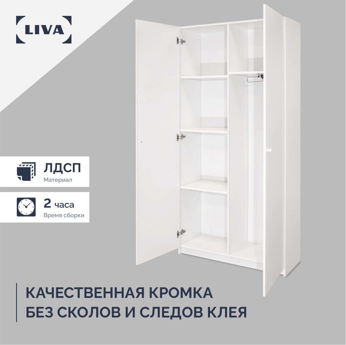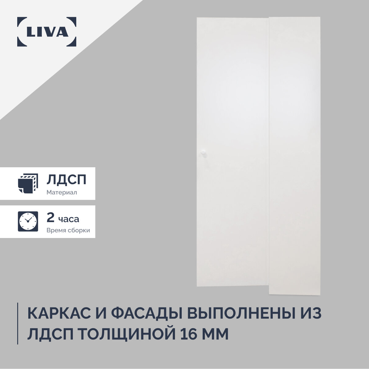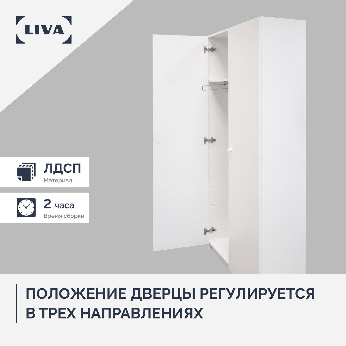 Шкаф-пенал для одежды в гостиную, прихожую, детскую, ЛДСП собственного производства, белый, LIVA