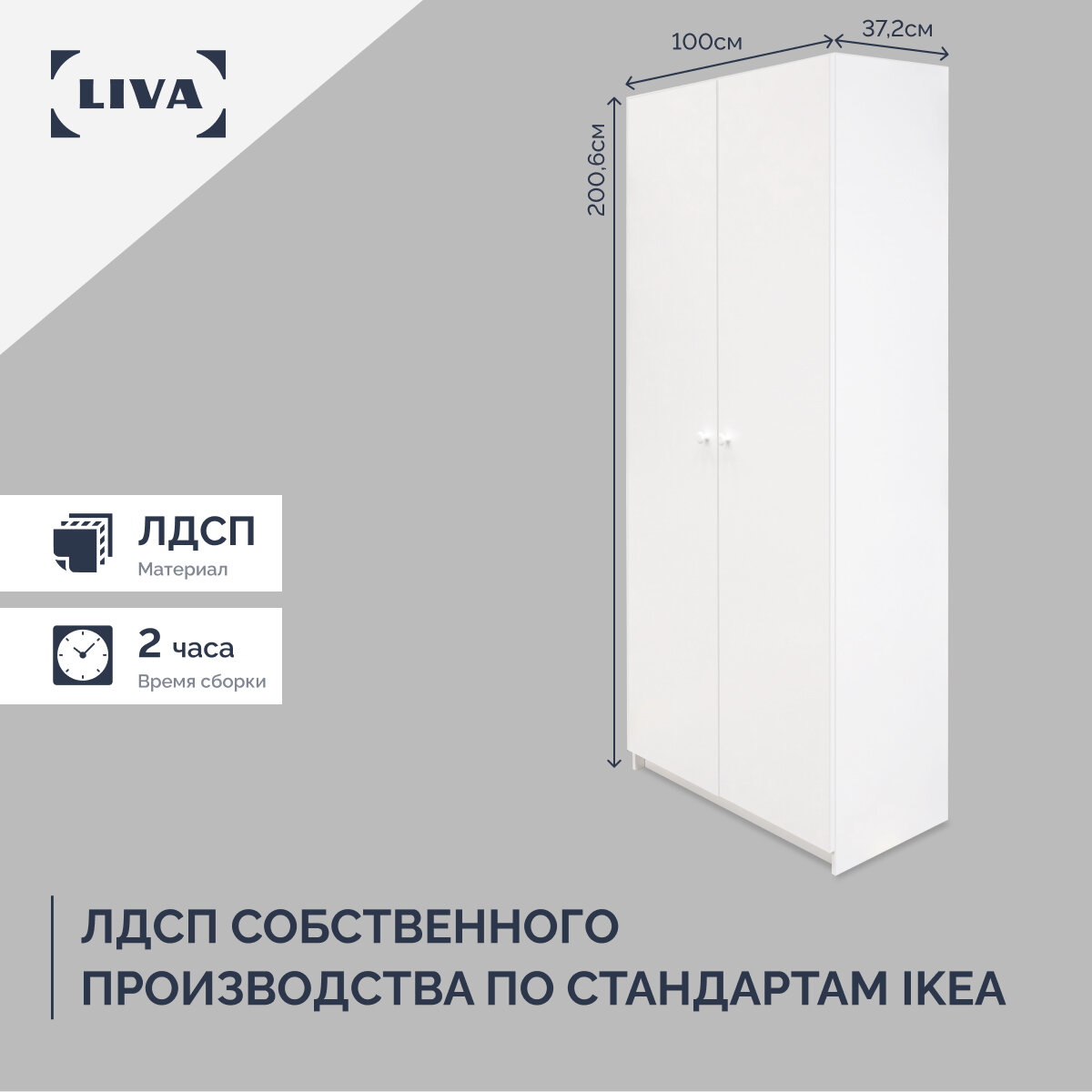 Шкаф распашной ADD для одежды с полками, белый, 100x200.6x37.2, LIVA Мебельные решения интересное: