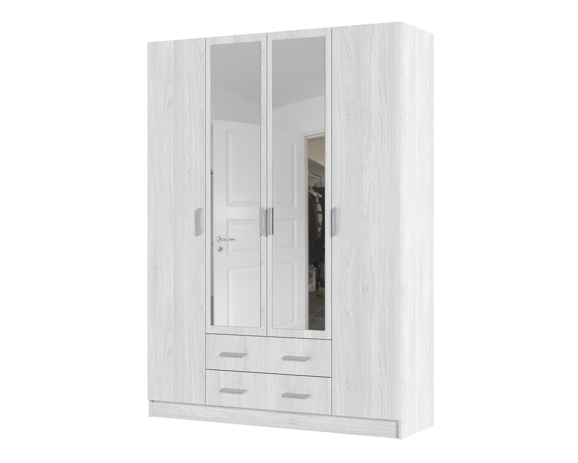Шкаф распашной 4х створчатый Сальма с зеркалом ШК 024, Белый глянец/Дуб анкор светлый