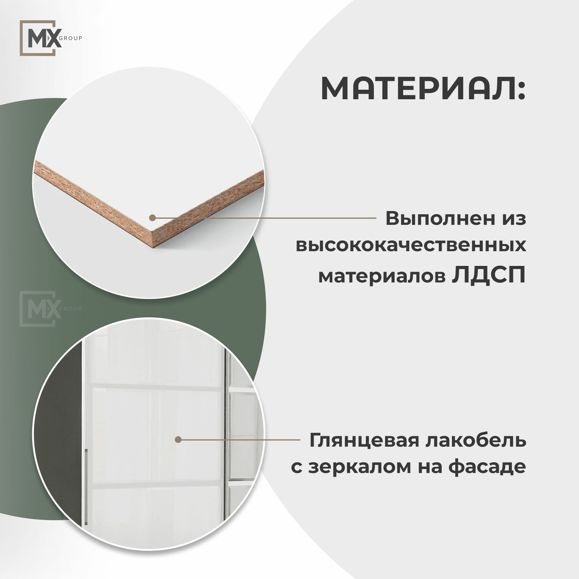 Шкаф-купе ШКП-3/ Шерри/"Танго-2"/ Лайн/ Айсбер Белый/Лакобель белый ЛДСП, с ящиками, полками, штангами, зеркалами, для дома 2000х2200х600