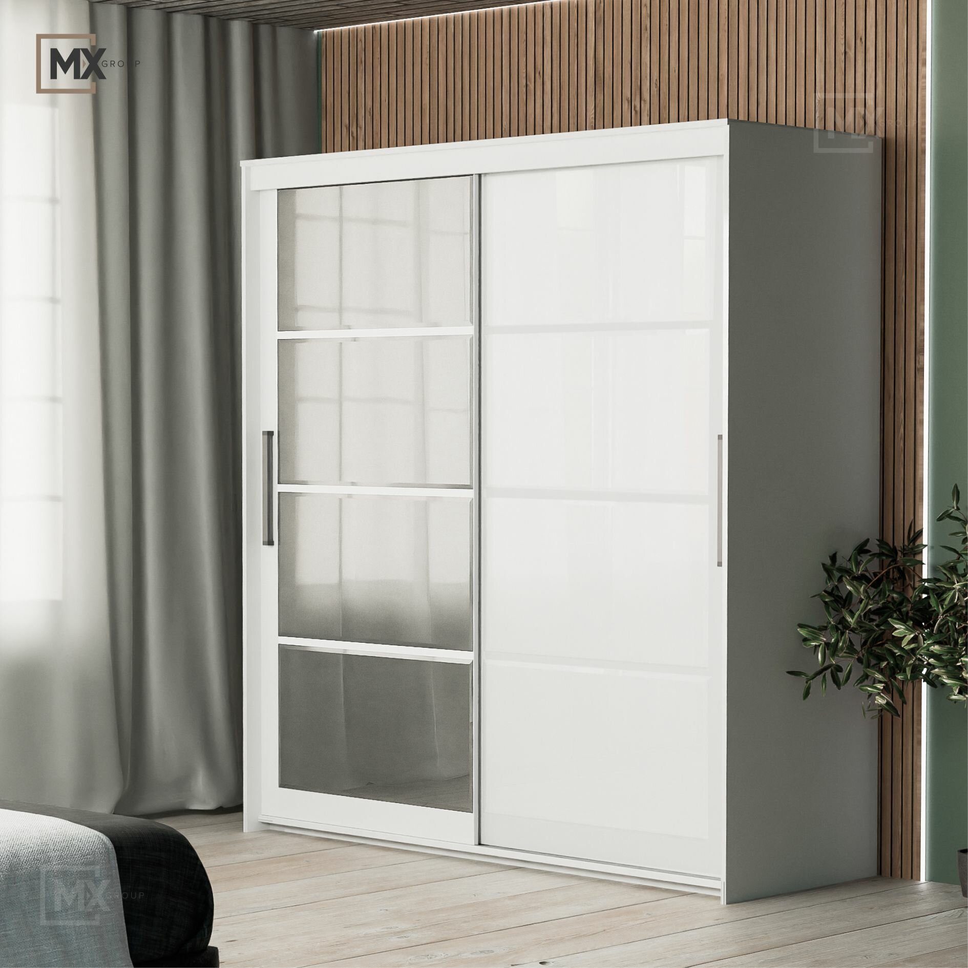 Шкаф для одежды распашной Нонтон Луас, 120 см, 7 полок и штанга, белый глянец