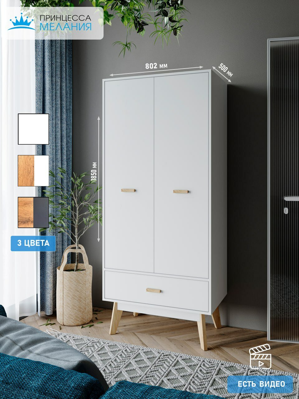 СохранитьШкаф для одежды распашной с ящиком, Принцесса Мелания, Белый, 1850х800х500 мм интересное: