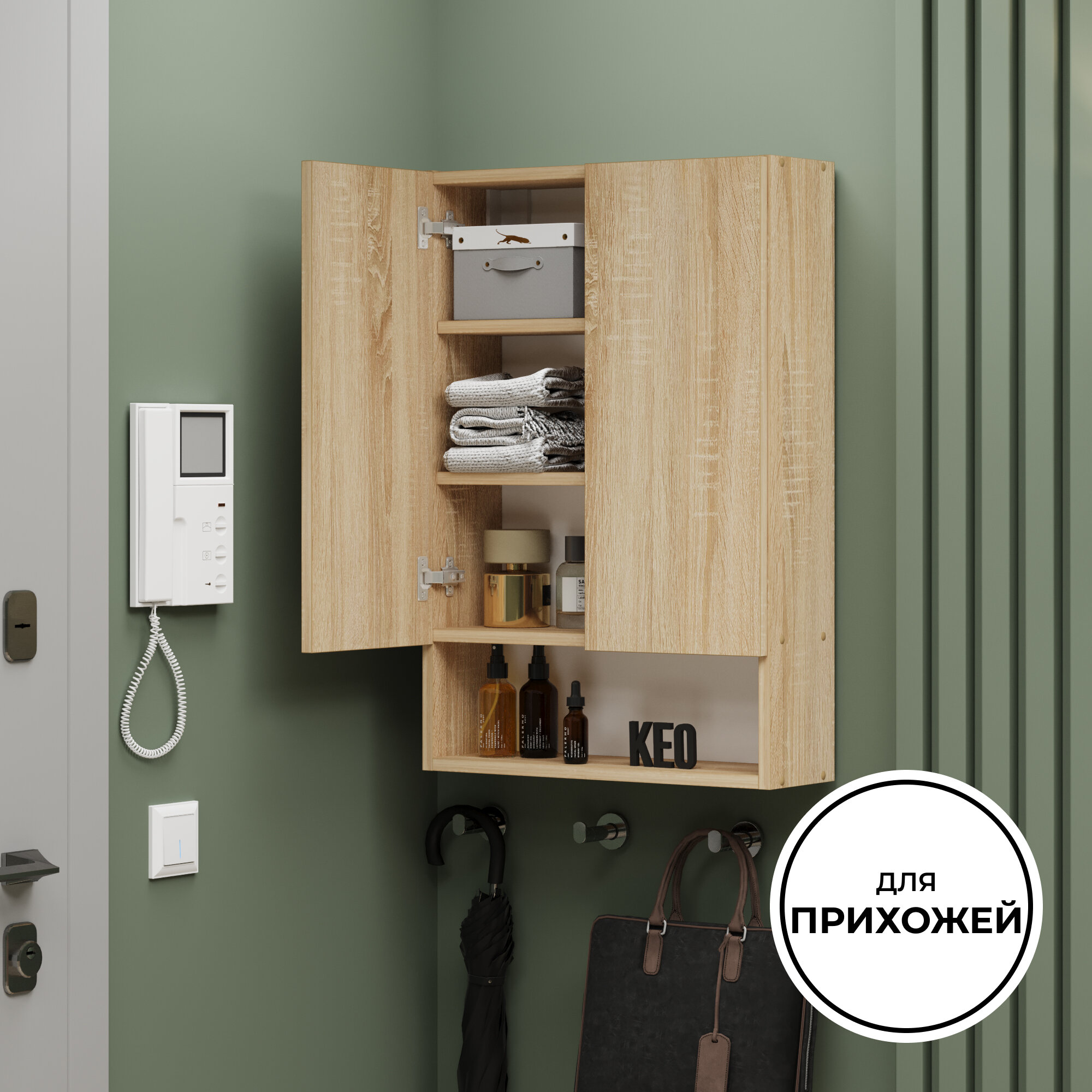 Купить Шкаф навесной 74х16,9х50см с полками подвесной деревянный для ванной прихожей балкона Кео ШКН-130 бежевый Дуб Сонома