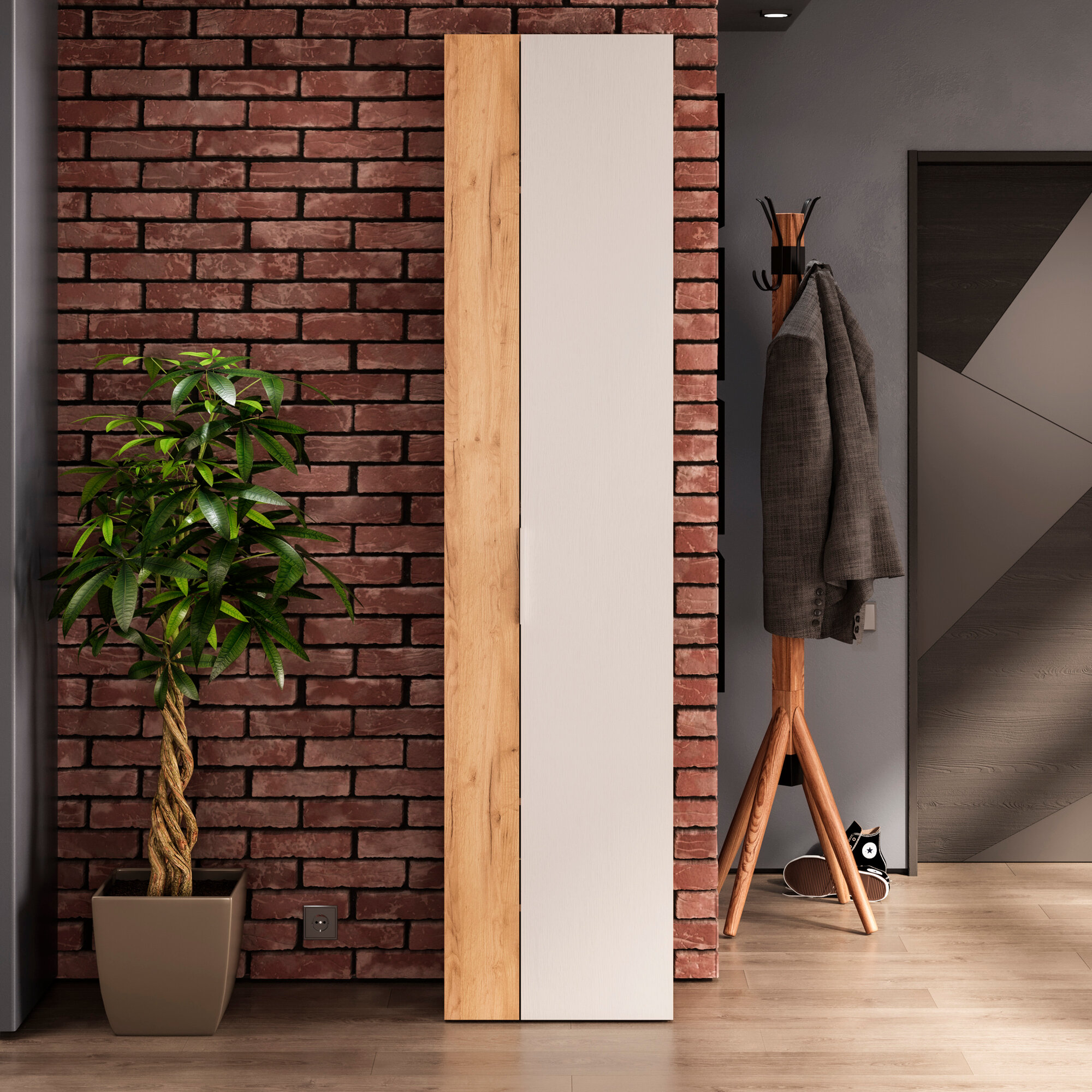 Шкаф распашной в прихожую, узкий шкаф для одежды, серый, Асти