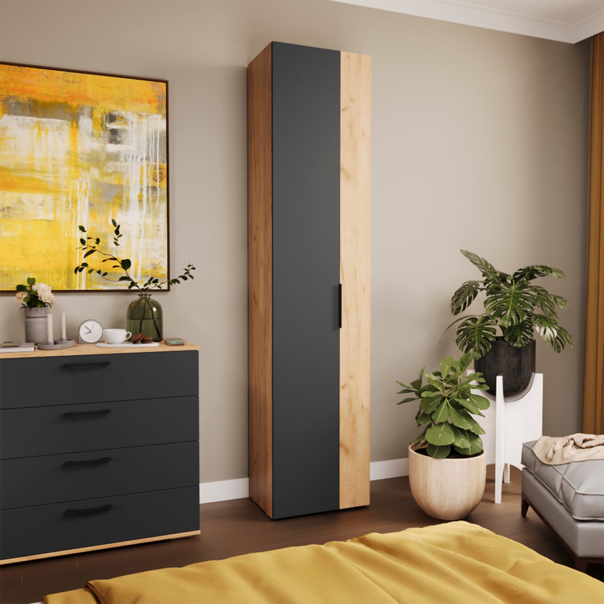 Шкаф узкий FRENT "Асти", распашной, ЛДСП, модульный, дуб золотой, белый ясень