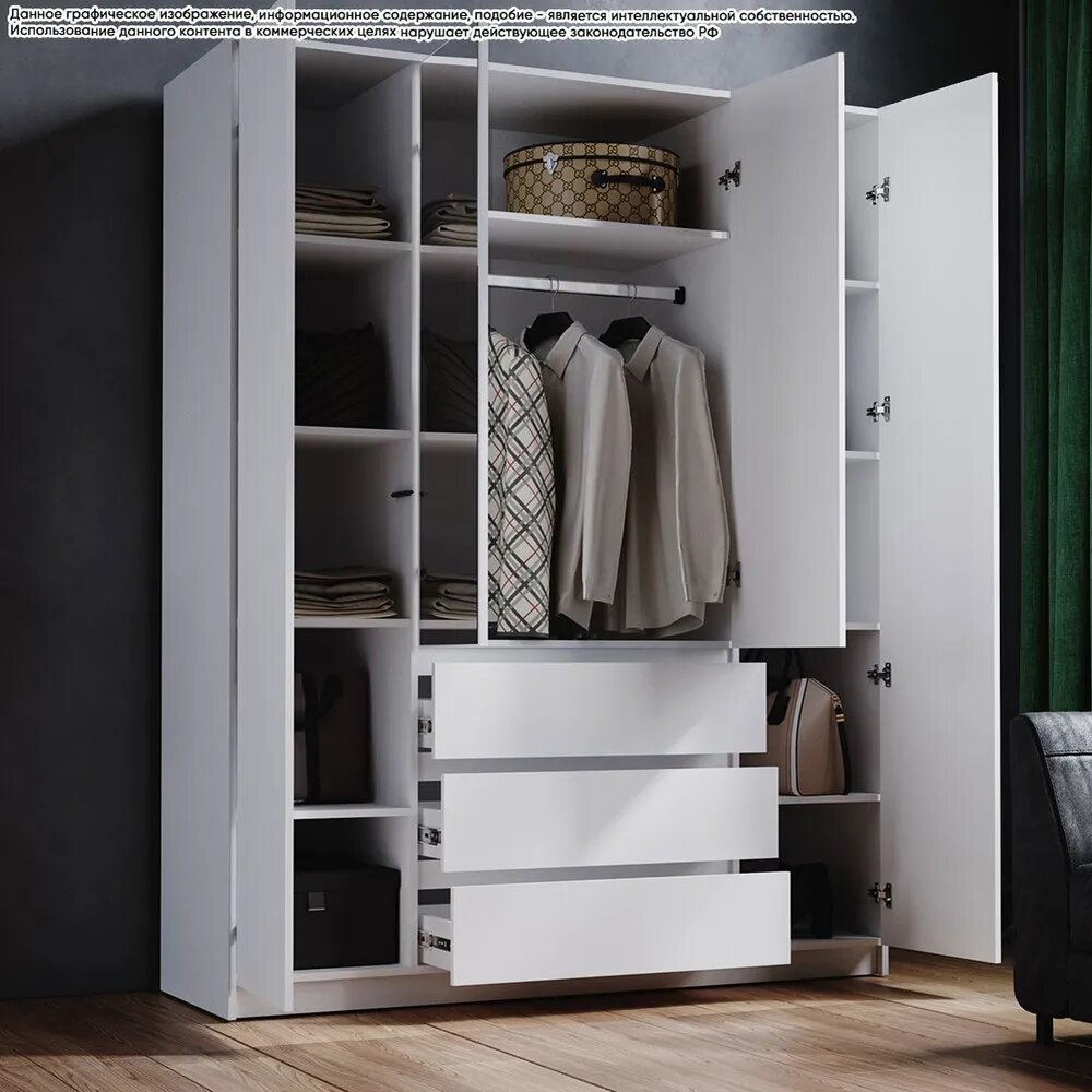 Шкаф для одежды распашной Нонтон Луас, 120 см, 7 полок и штанга, белый глянец