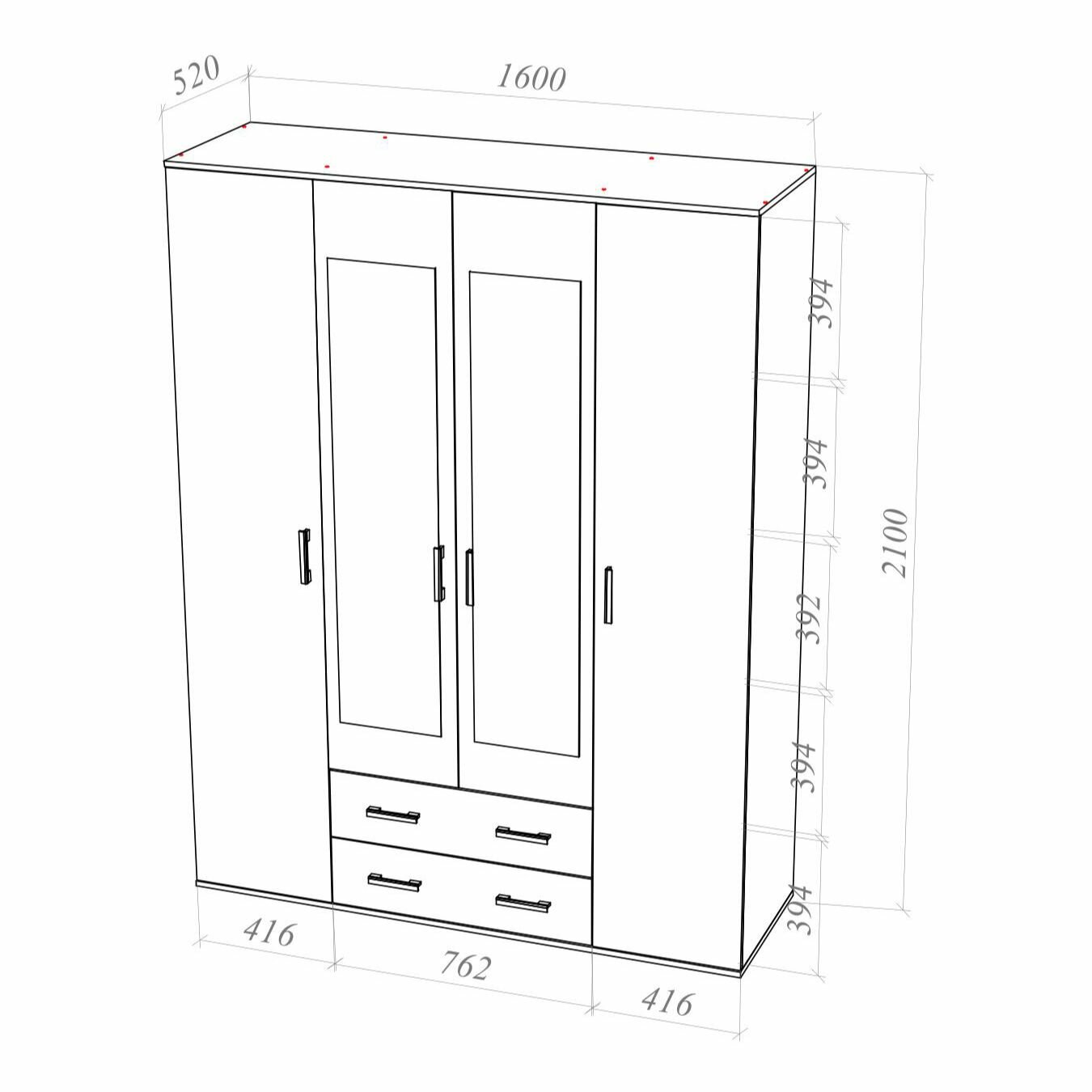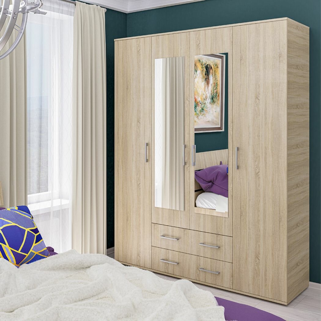Четырехдверный шкаф для одежды с зеркалами и ящиками Шон-7, Дуб сонома интересное: