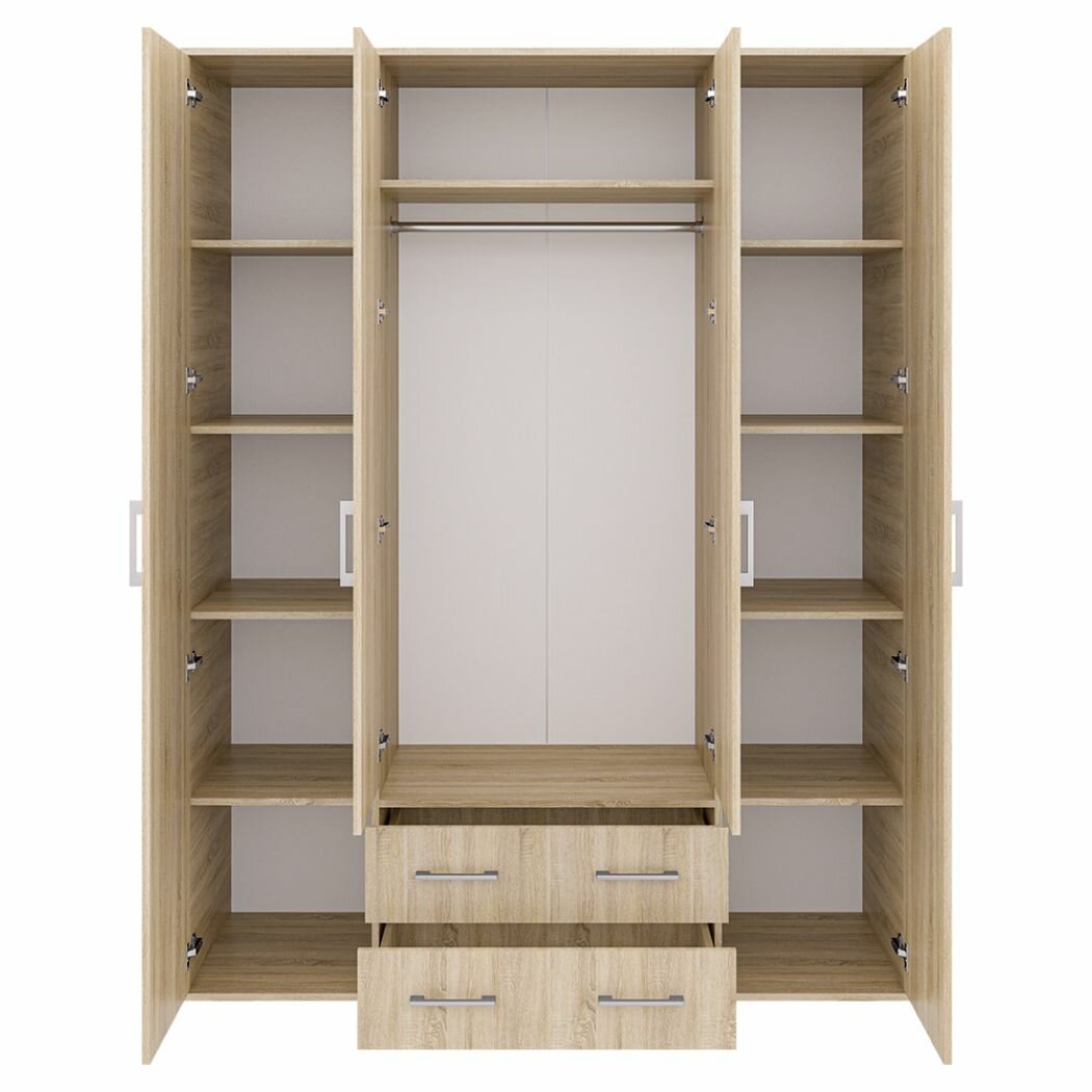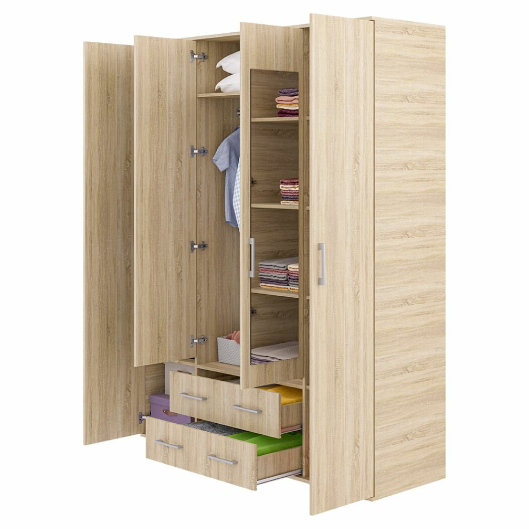 Купить Четырехдверный шкаф для одежды с зеркалами и ящиками Шон-7, Дуб сонома