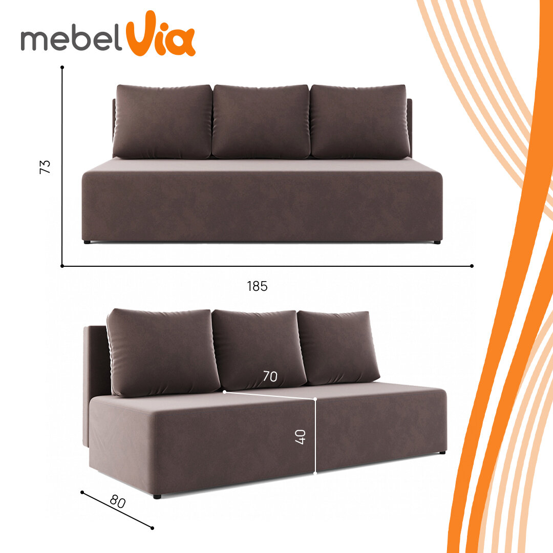 Диван-кровать MebelVia Тони 185x73x80см, велюровая обивка, спальное место 130x185
