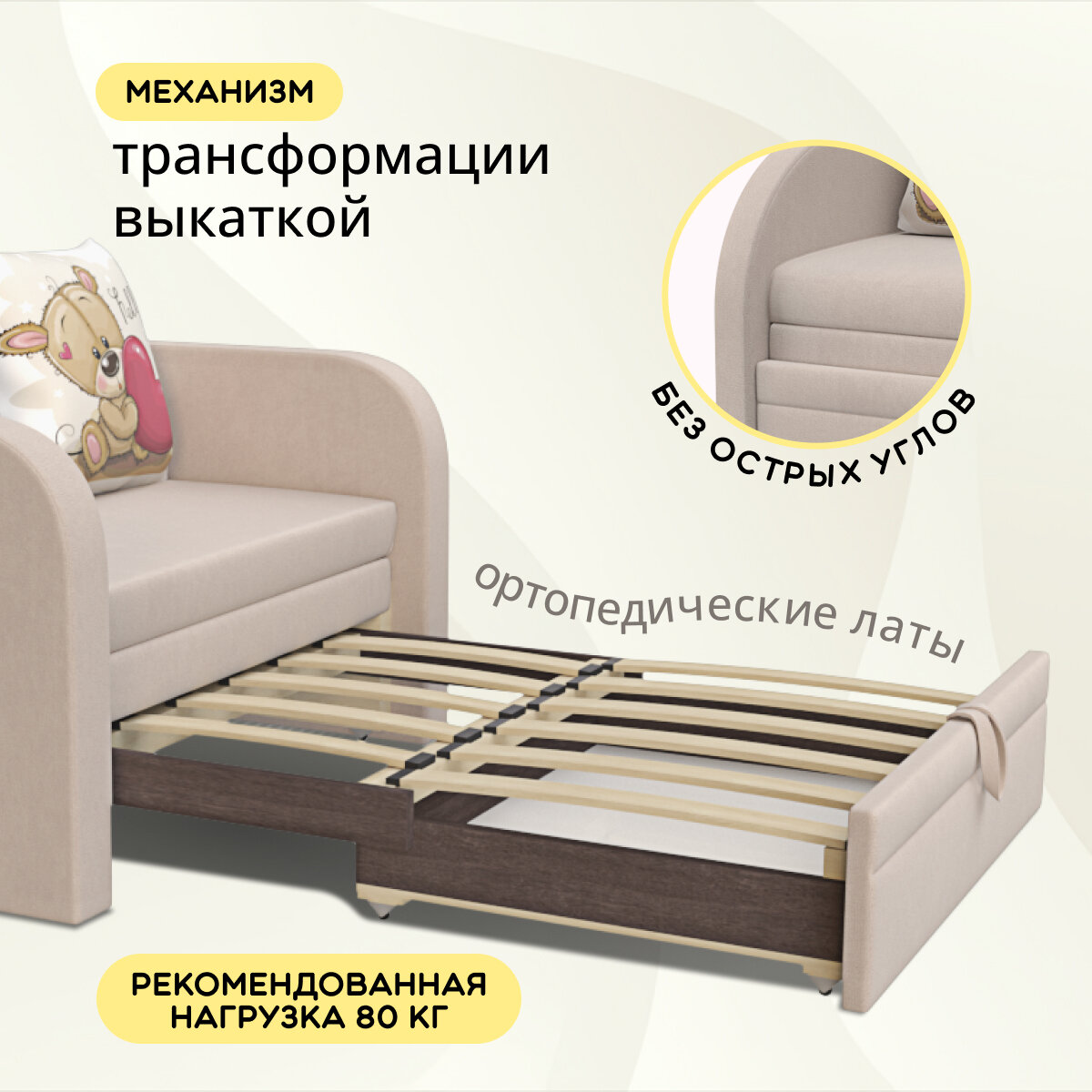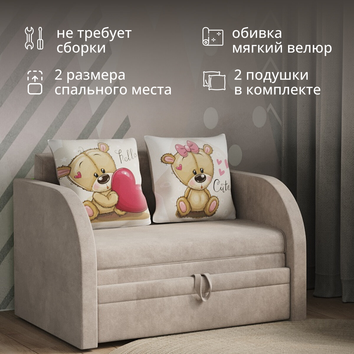 Купить Детский диван "Малыш", с ящиком для белья, выкатной механизм, велюр, бежевый