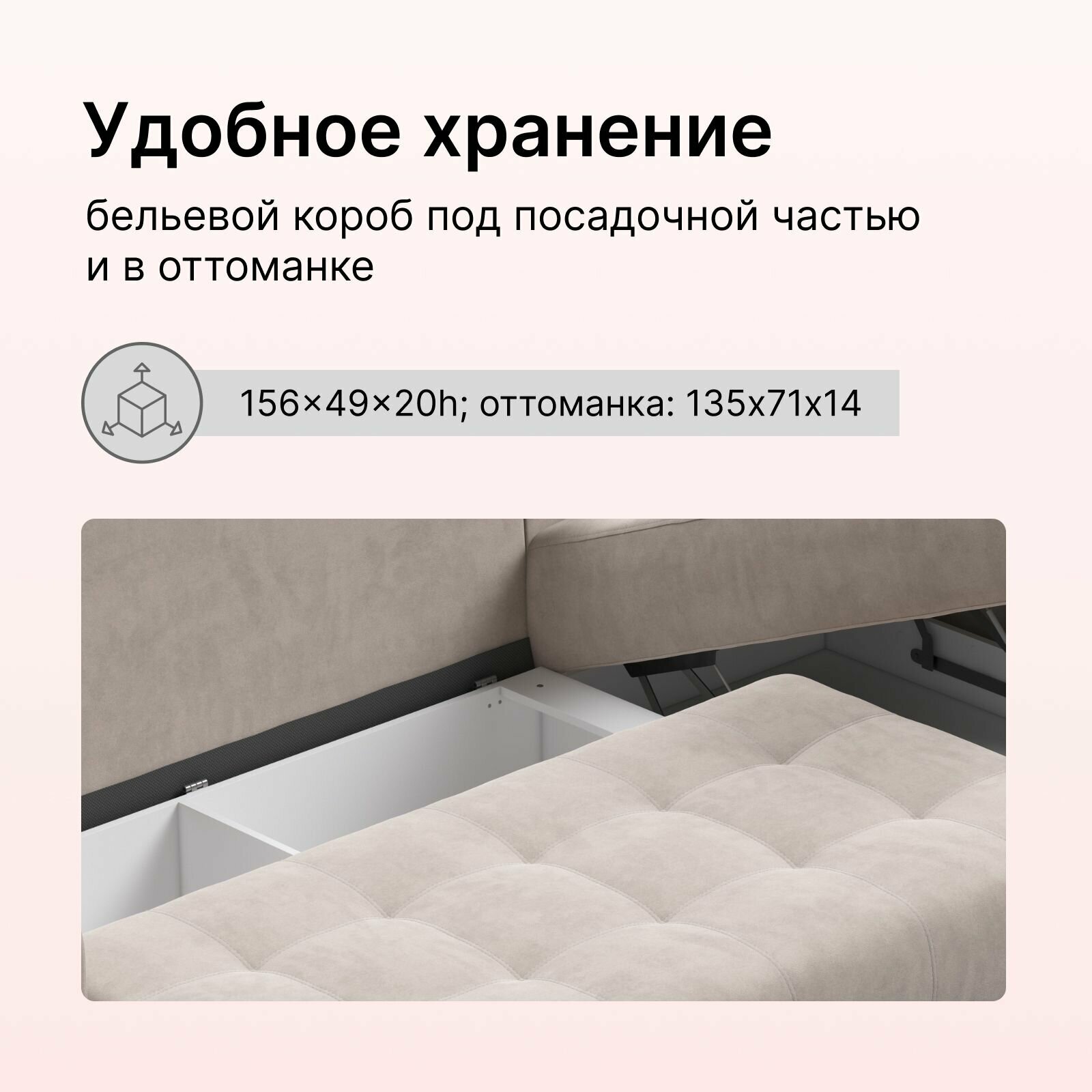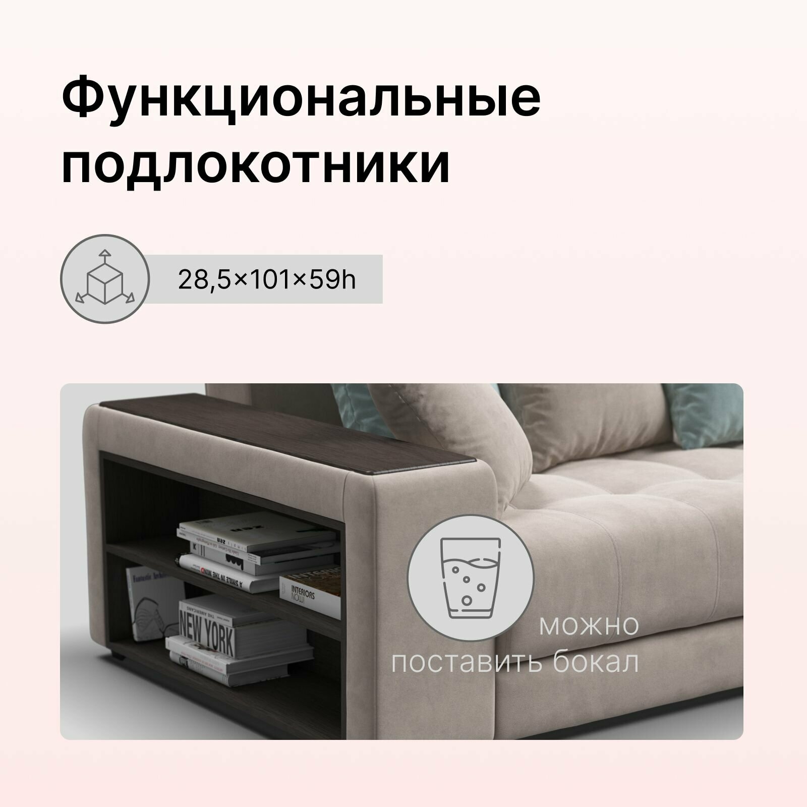 Угловой диван-кровать Дубай 3.0 с ящиком для хранения, еврокнижка, велюр Monolit латте/аква, 300х155х87 см интересное: