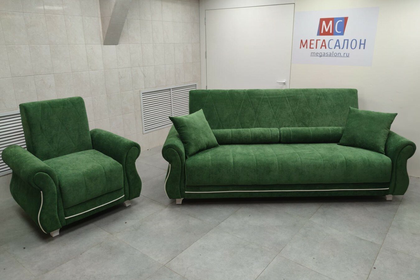 Прямой диван Рози Зеленый Микровельвет, механизм Книжка