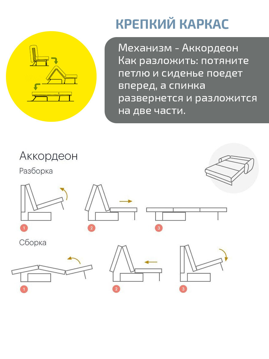 | Особенности | раскладная конструкция, с подлокотниками, съемные подушки, съемный чехол |