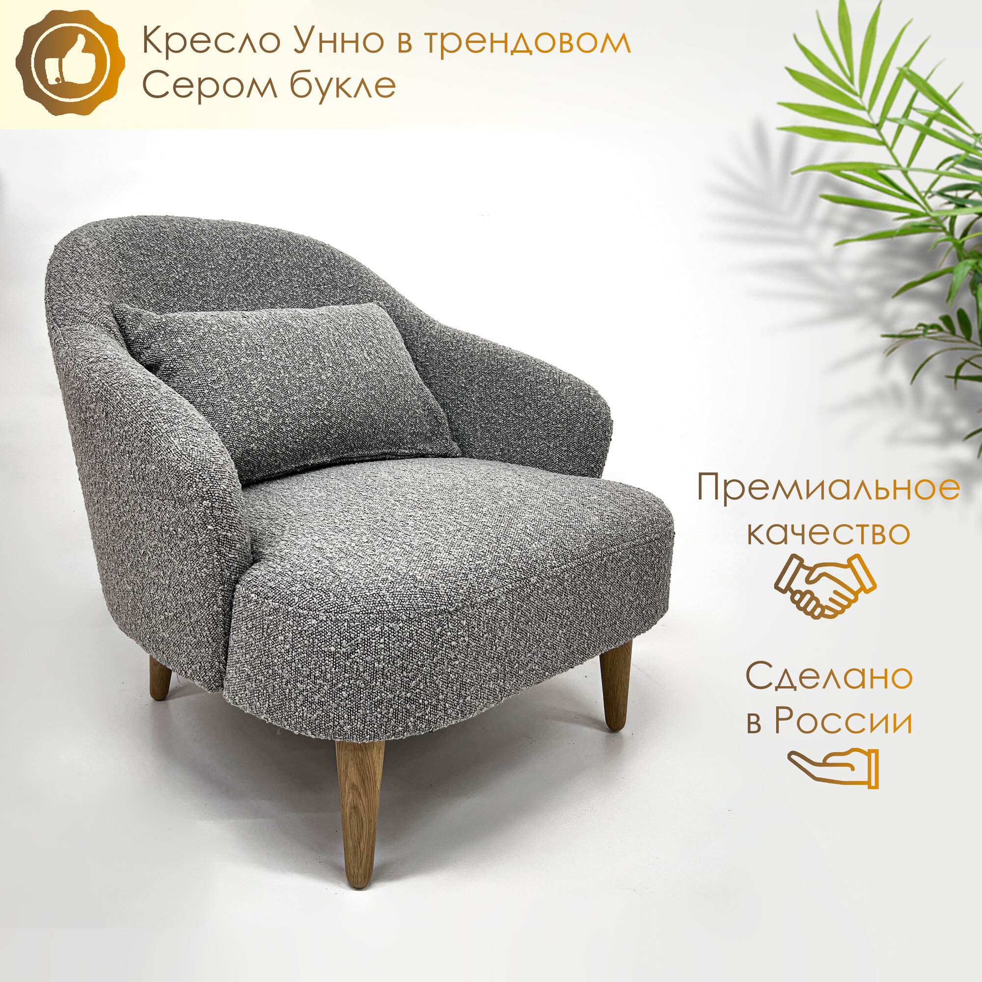 Кресло Унно в ткани букле, серое кресло, мягкое кресло
