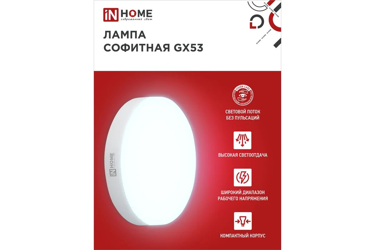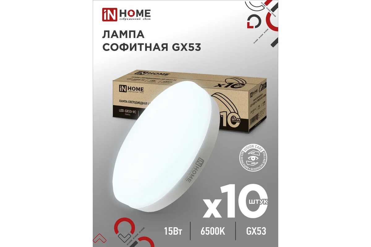 Лампа светодиодная IN HOME, LED-GX53-VC 15Вт 230В 3000К 1430Лм, Теплый белый свет, 10 шт.