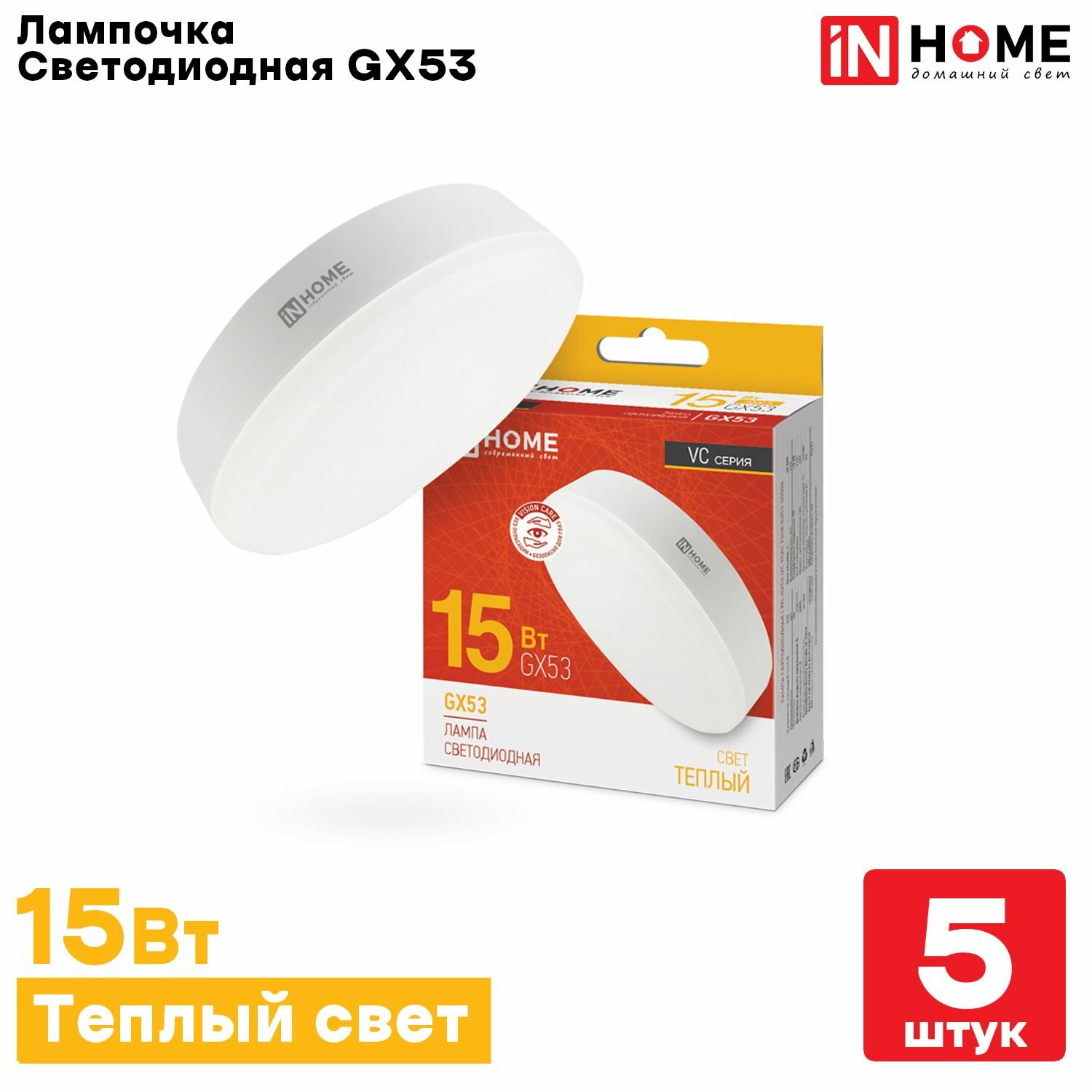 Купить Лампа светодиодная IN HOME, LED-GX53-VC 15Вт 230В 3000К 1430Лм, Теплый белый свет, 5 шт.