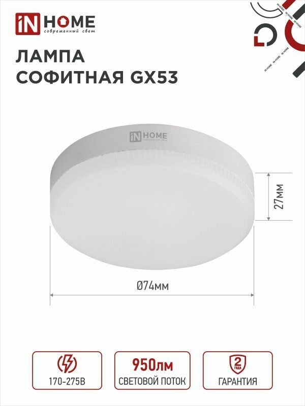 IN HOME Лампа светодиодная LED-GX53-VC 4PACK 10Вт 230В 6500К 950Лм (4шт./упак.) (арт. 4690612052953) 1шт.