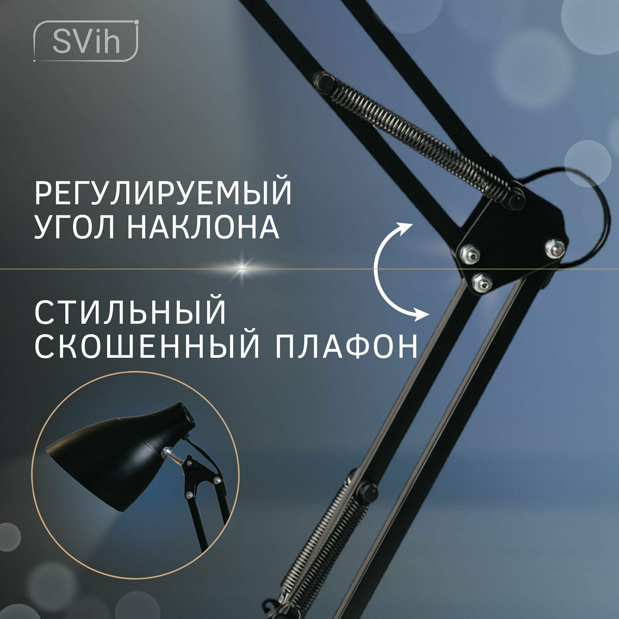 Настольная лампа SVih, E27, складная, на струбцине, черный, 60W