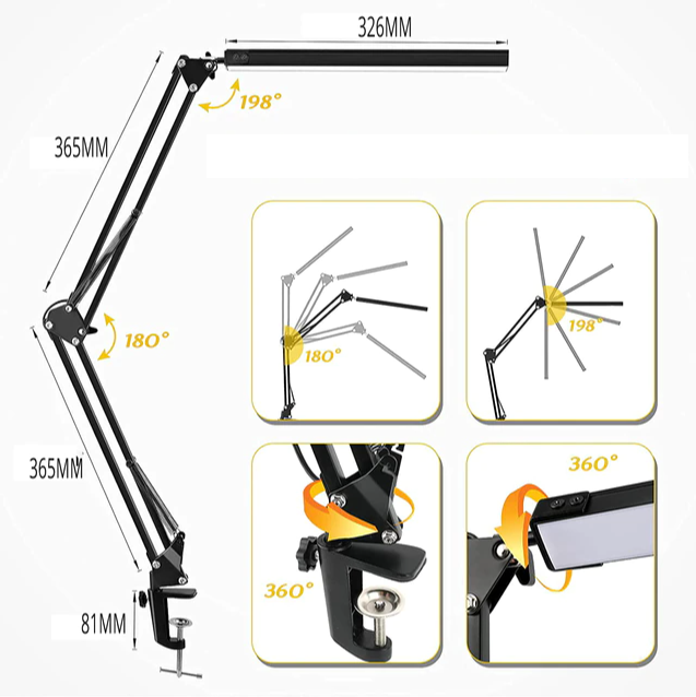 Купить Лампа LED Light, настольная, хай-тек, складная, на струбцине, 80 светодиодов, чёрная, 2700K до 6400K, 10 уровней яркости