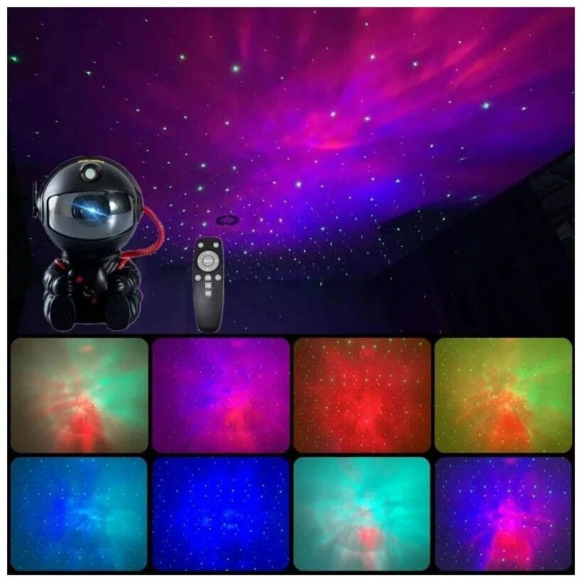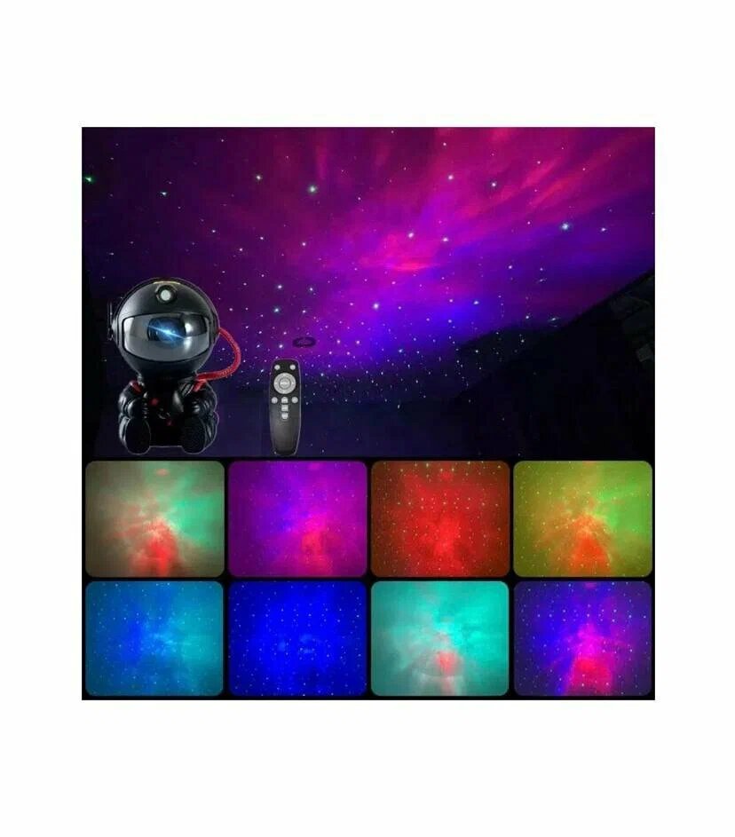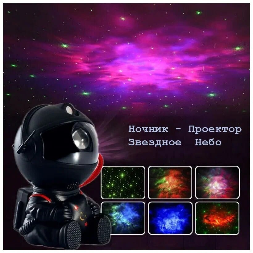 Детский лазерный ночник проектор черный маленький "Космос" с пультом, звездное небо, 3D космический ночник, фигурка космонавт, астронавт