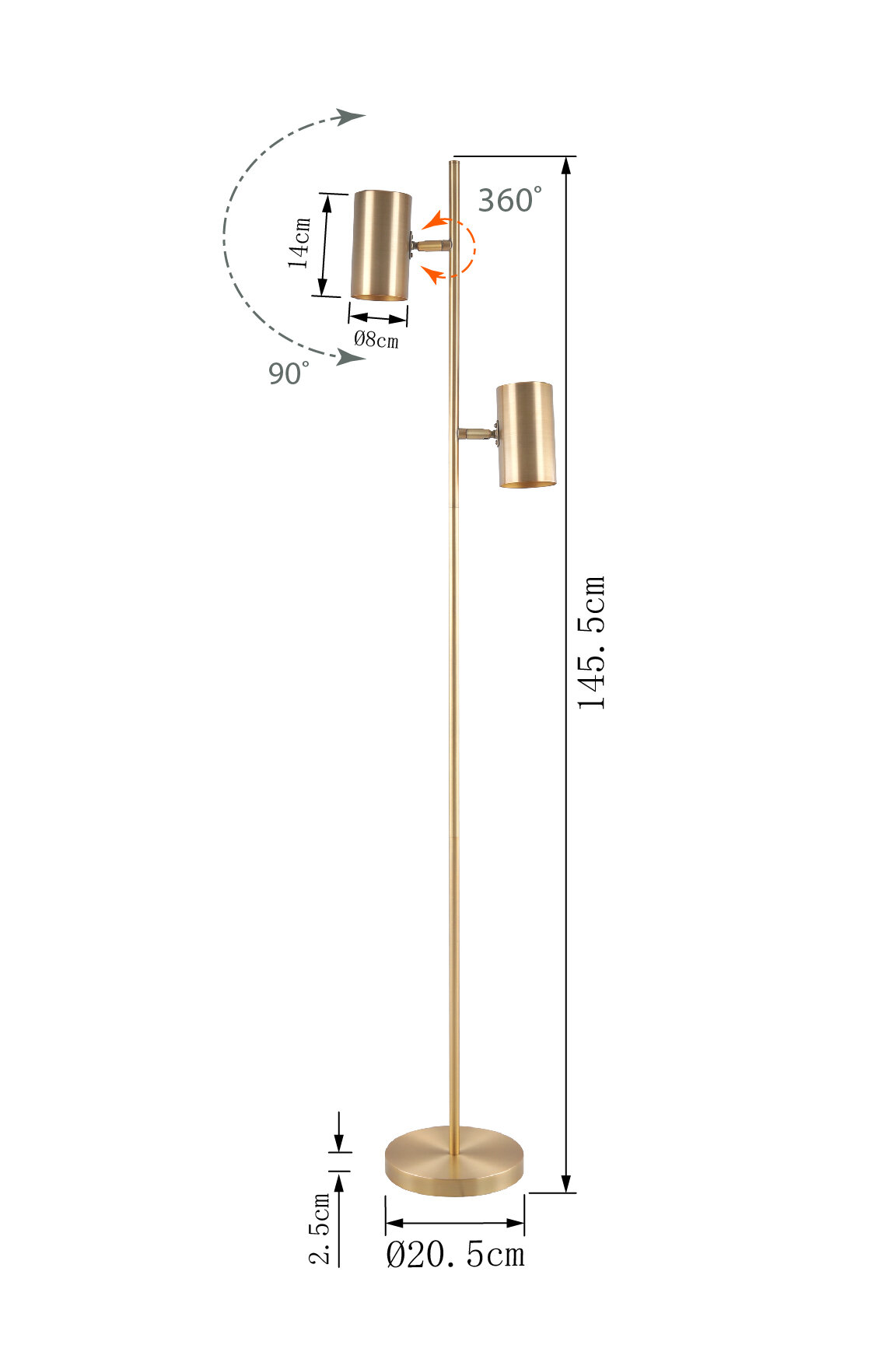Купить Торшер с двумя лампами напольный металлический Е27 светильник напольный, латунь
