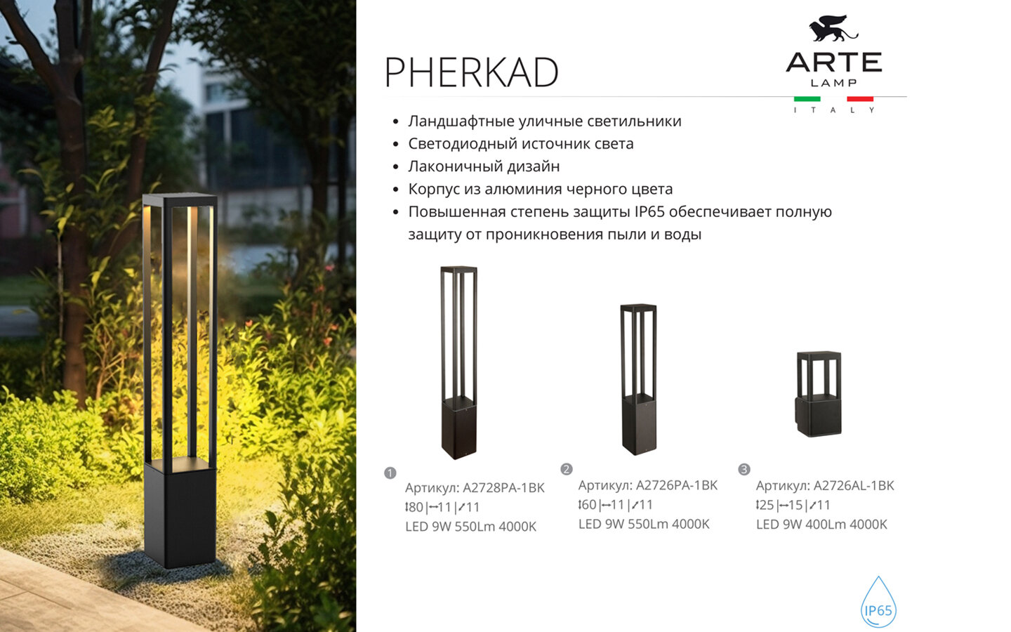 Ландшафтный светильник Arte Lamp Pherkad A2728PA-1BK
