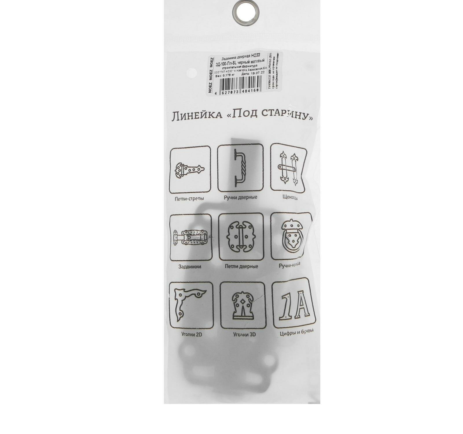 Задвижка дверная накладная ноэз ЗД-100-Пл-SL черный матовый, узор (30) интересное: