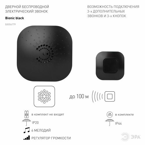 Звонок ЭРА BIONIC беспроводной черный интересное: