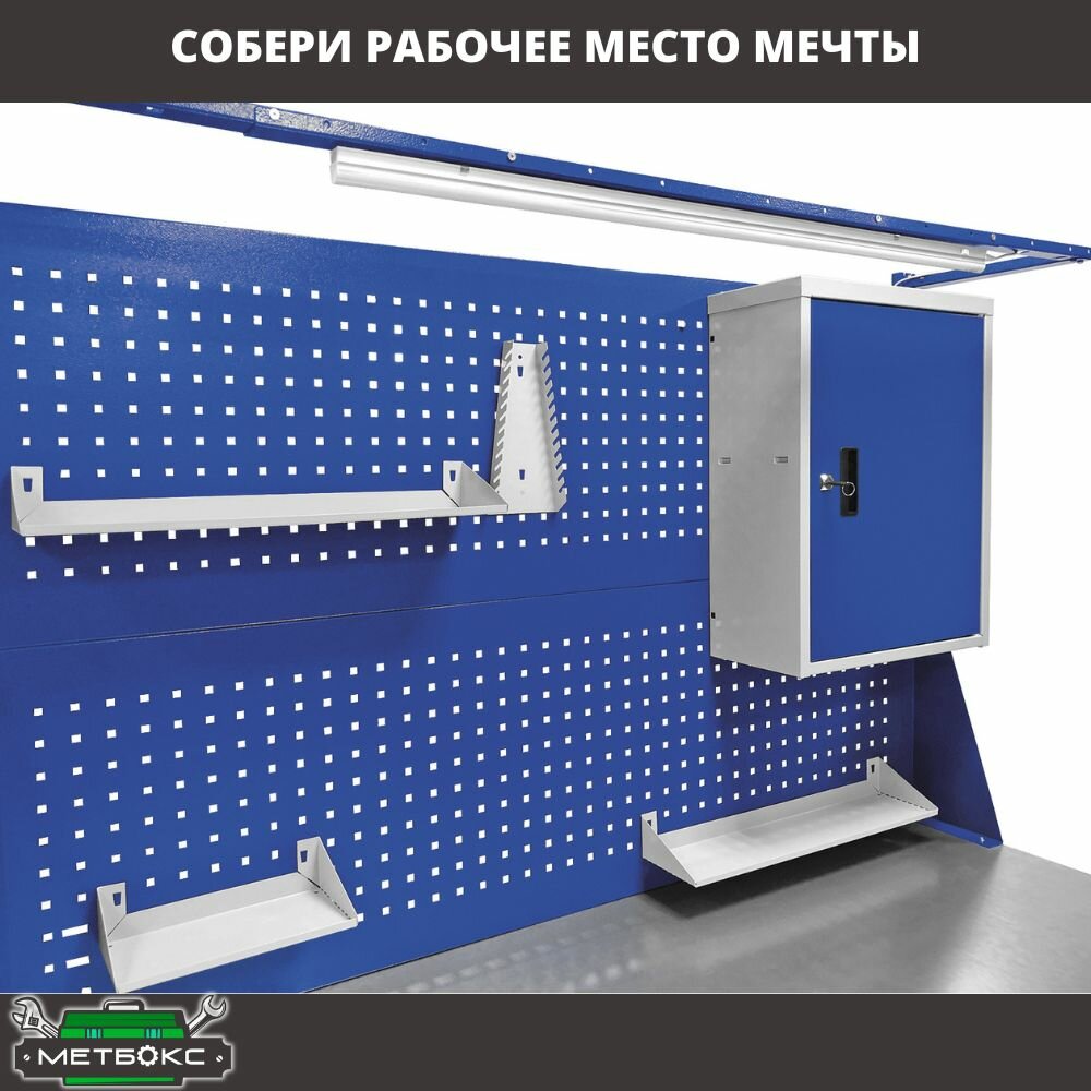 Стол металлический Metalex 750х1400х600 с выдвижными ящиками и перфопанелью