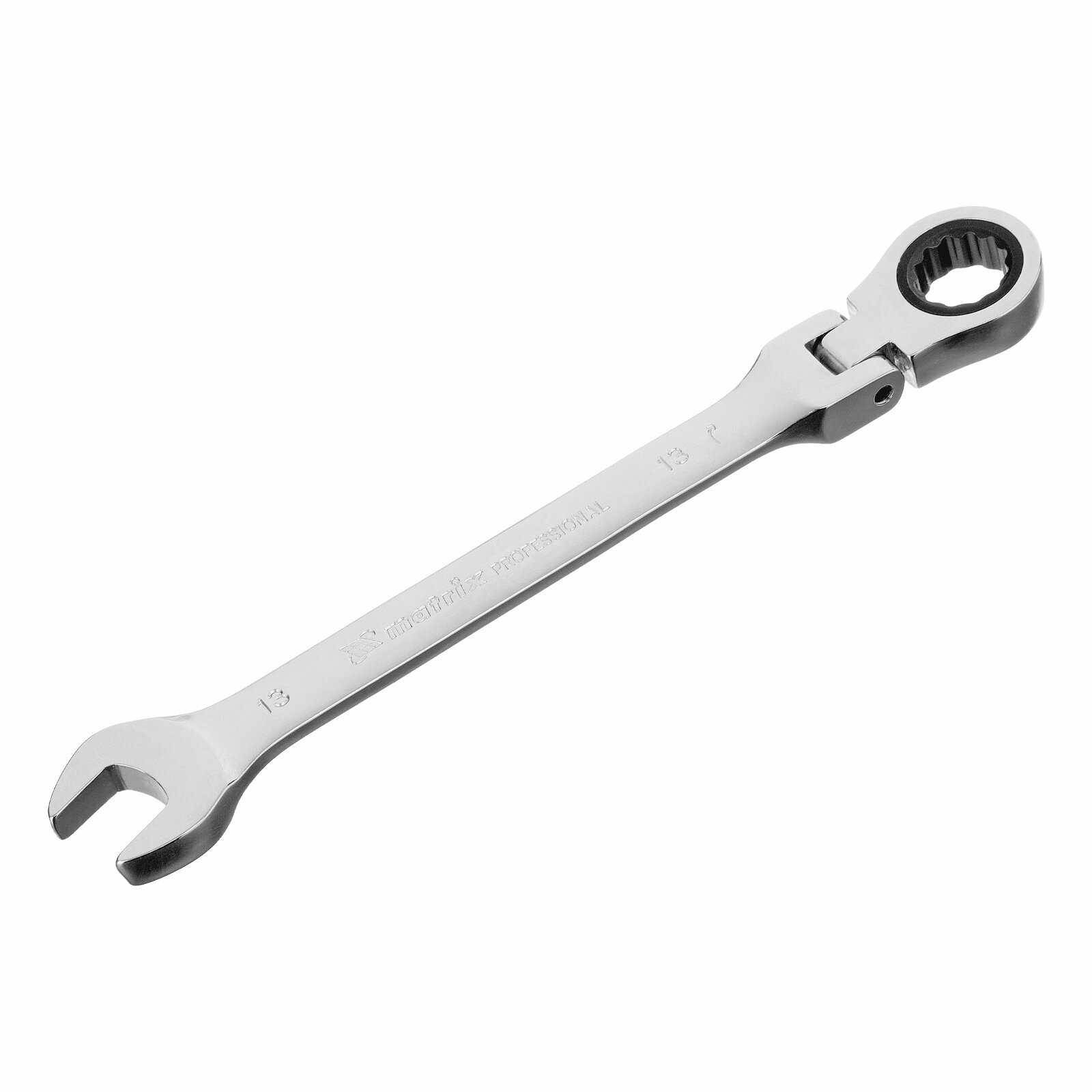 Matrix Ключ комбинированный трещоточный, 13мм, CrV, шарнирный, зерк.хром// Professional 14865