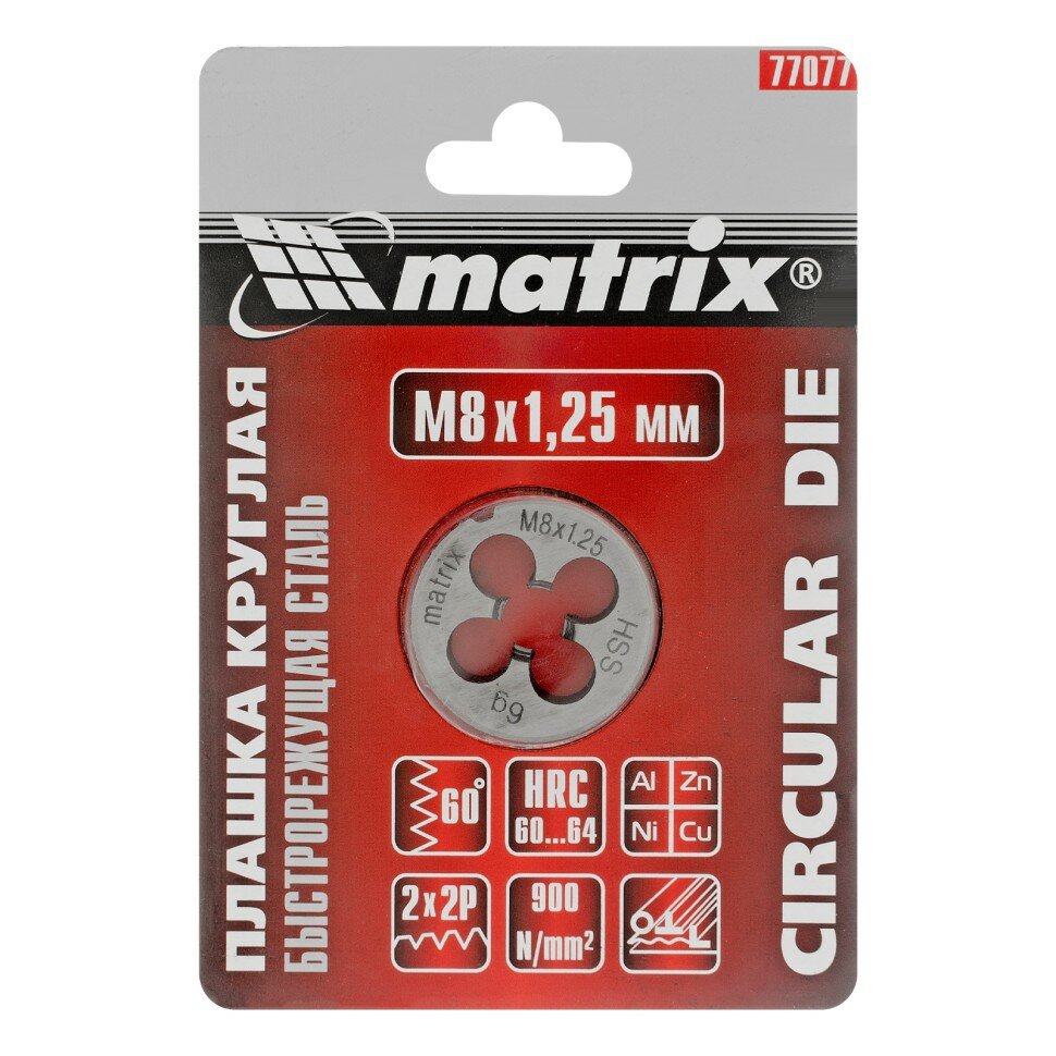 Купить MATRIX Плашка М8 х 1,25 мм, Р6М5 Matrix, ( 77077 )